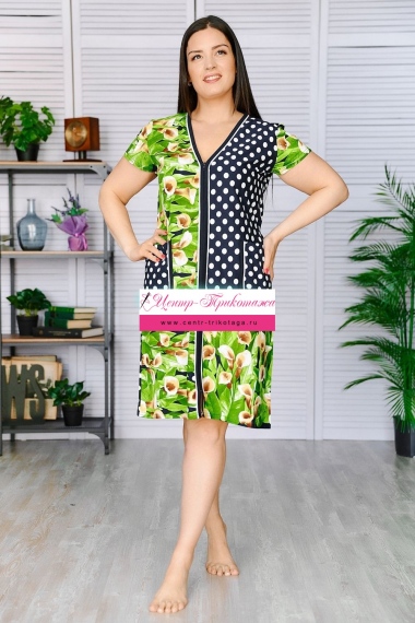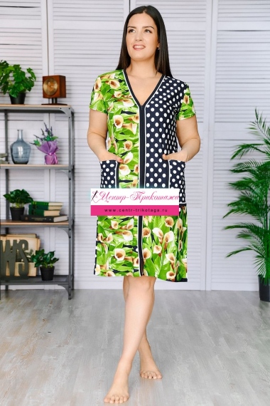 Халат женский на молнии из натурального хлопка, V-образный вырез горловины, средней длины, приятный к телу, комфортный. Выполнен из кулирки, с двумя карманами, с поясом.