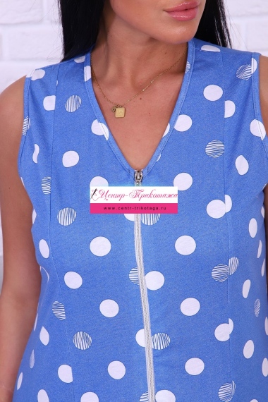 Халат женский на молнии, без рукава, с карманами. Ткань 100% хлопок кулирка расцветка горох . Для дома и отдыха. Халат легкий, удобный и комфортный. Сохраняет форму и цвет после носки.