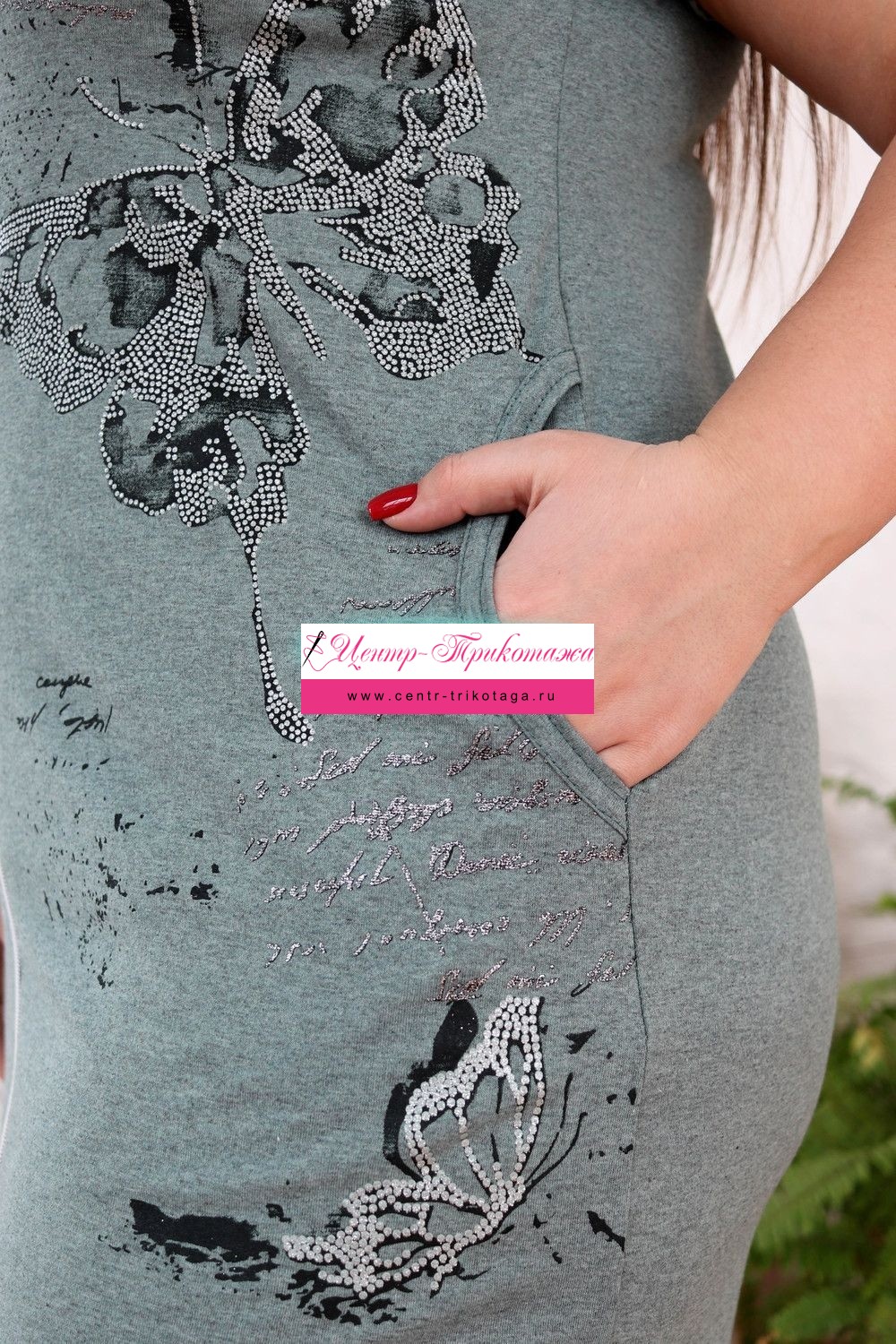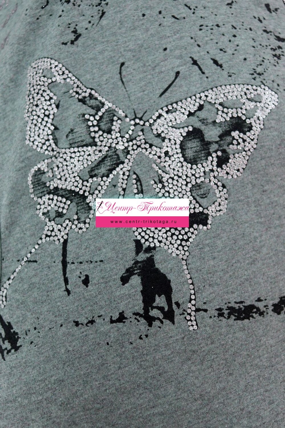Халат женский полуприлегающего силуэта. Рукав втачной короткий. Вырез Y-образный. На полочках внутренние карманы. Оригинальный принт с бабочками на полочках и рукавах. На модели 52 размер