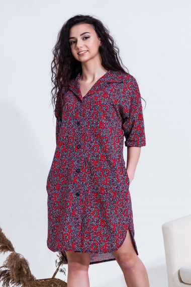 Халат-туника на пуговицах свободного рубашечного кроя. Спущенная пройма. Рукава с манжетами. Низ халата обработан широкой бейкой. Разница в длине спинки и переда 10см. Длина в замерах указана по спинке. Модная в этом сезоне клетка в сочетании с актуальными цветами не оставит вас без внимания, а свободный крой позволит чувствовать себя уверенно.