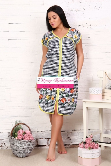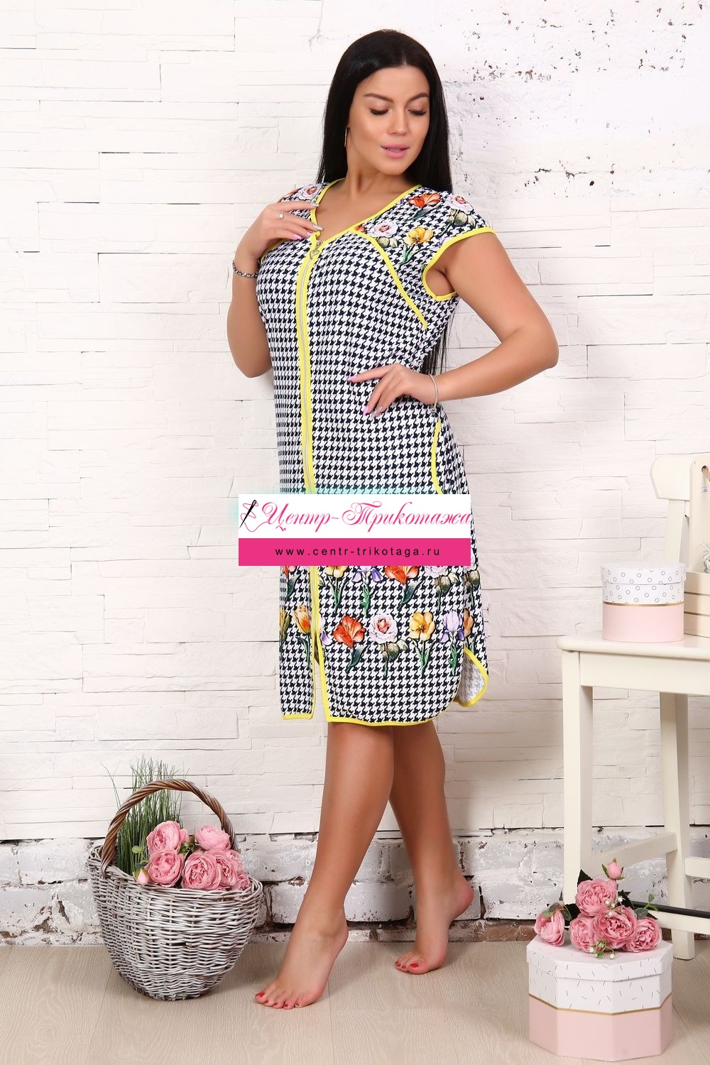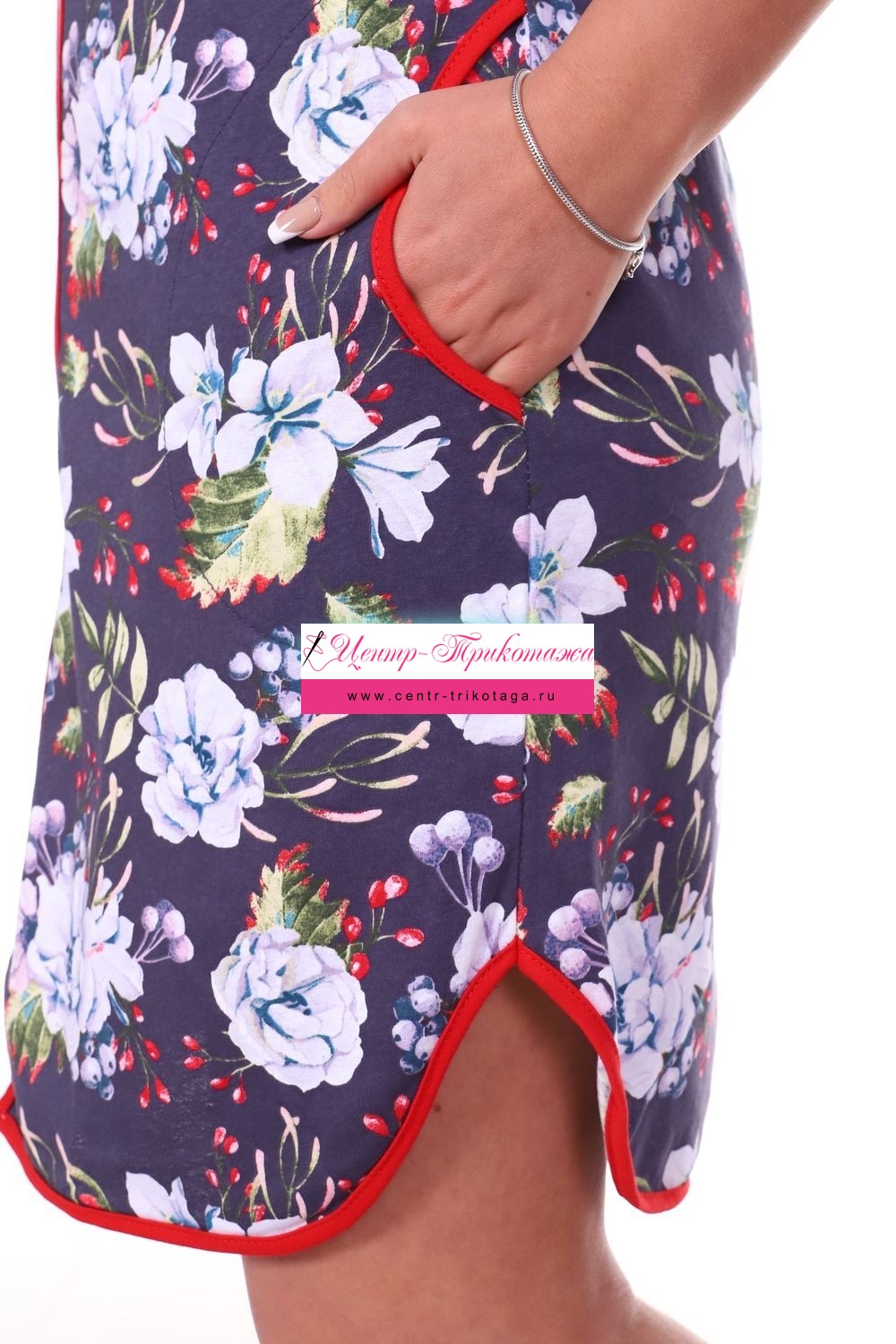 Легкий женский халат из кулирки. Контрастная окантовка, рукава отсутствуют, застегивается на молнию, сзади завязки, по бокам карманы, длина чуть выше коленей