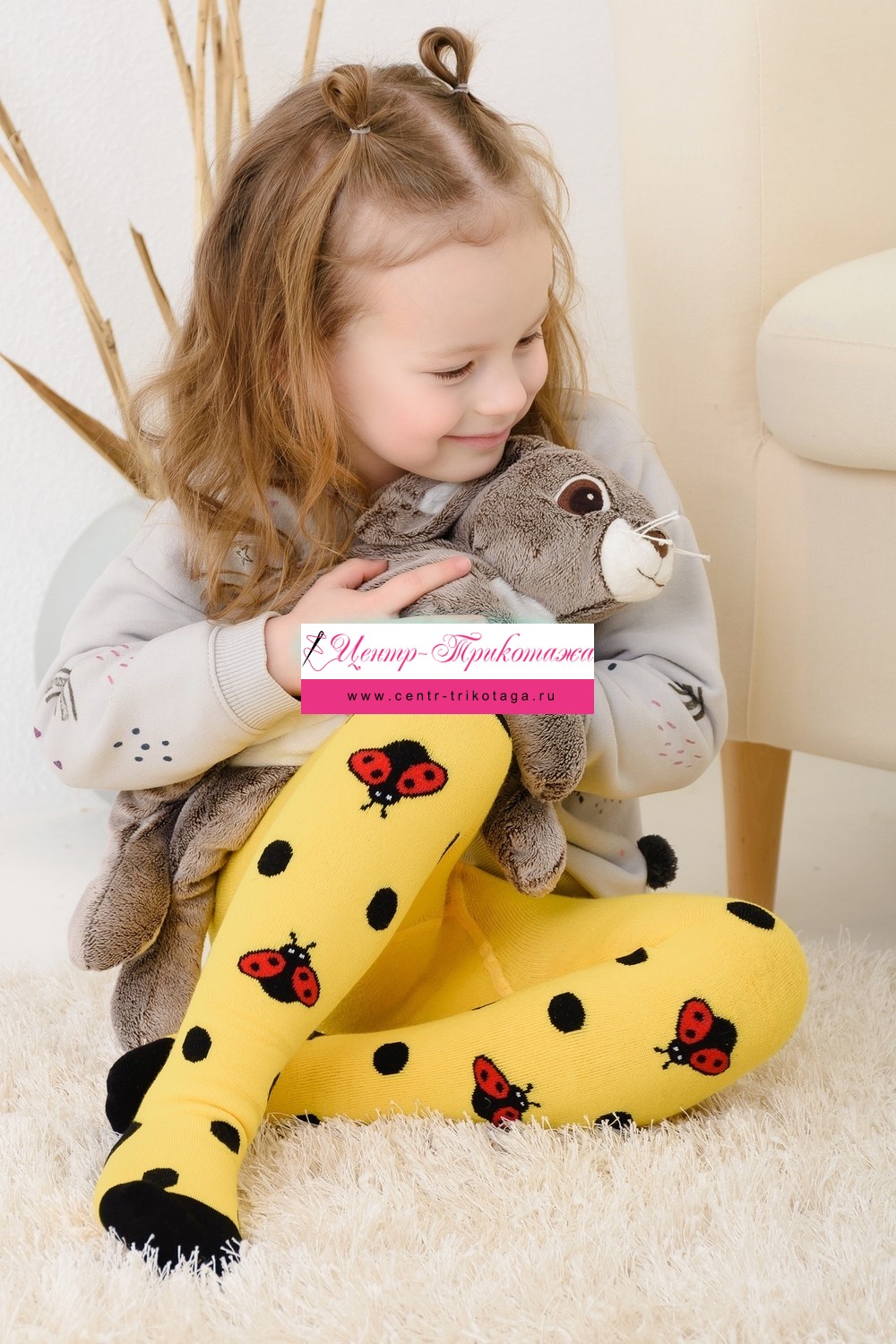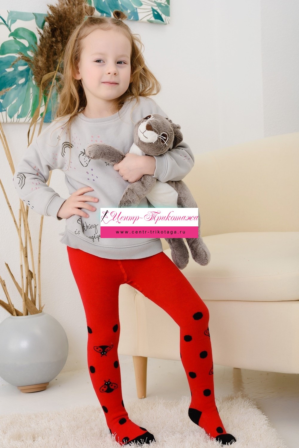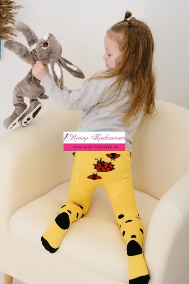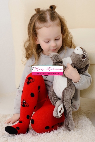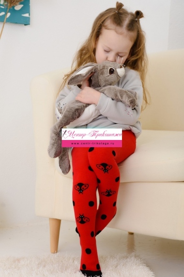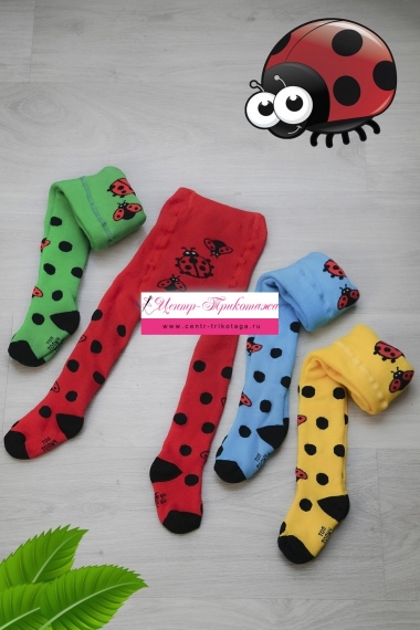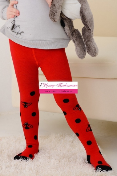 Теплые плюшевые колготки с вывязанными божьими коровками