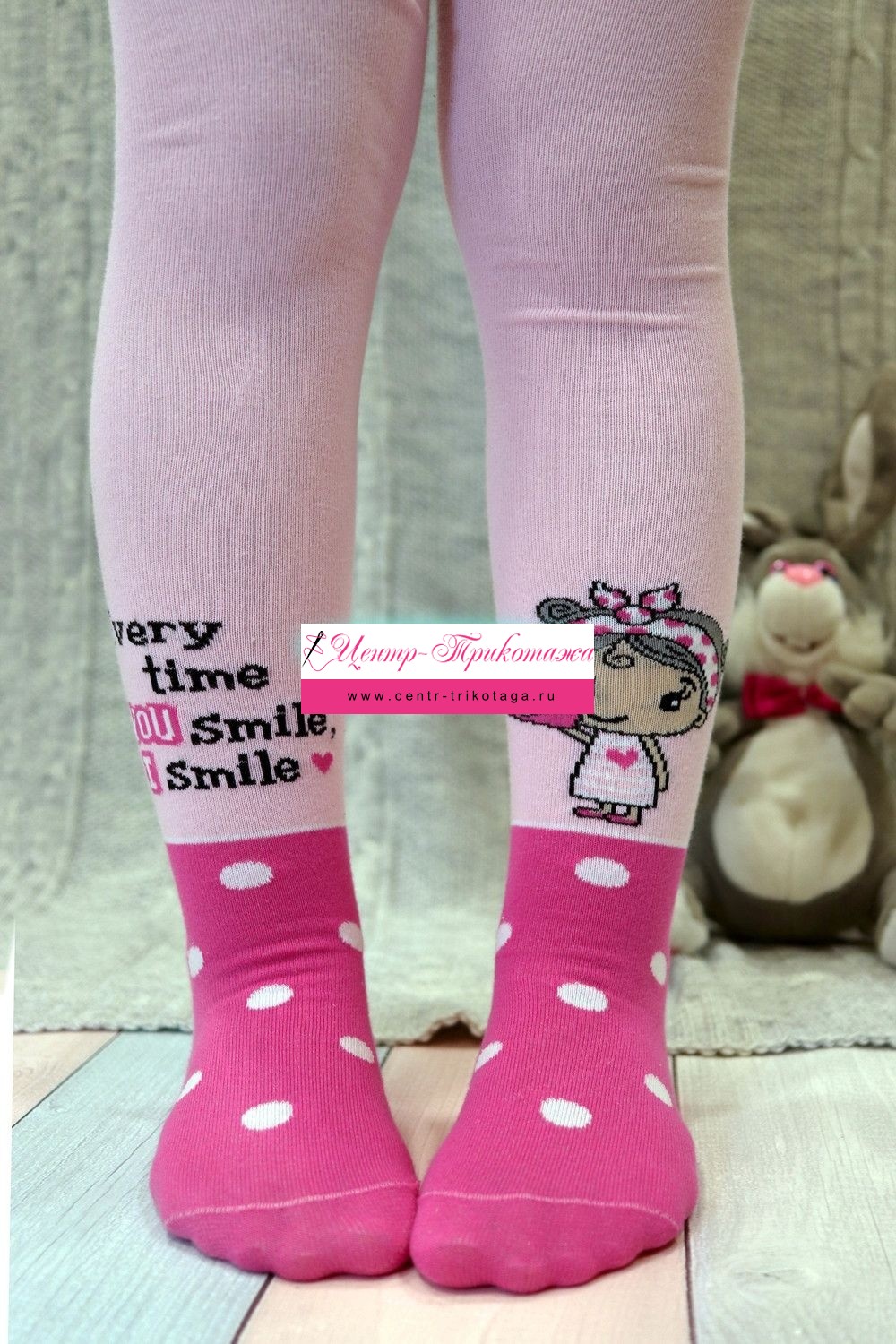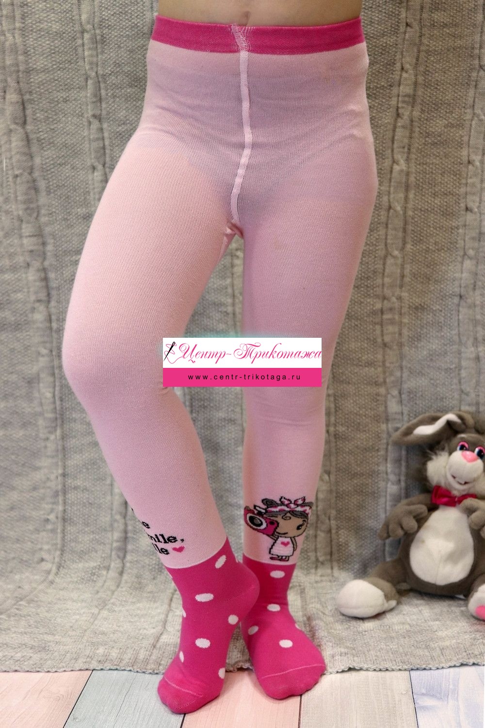 Яркие детские колготки с рисунком в виде девочки с фотоаппаратом и надписью Каждый раз, когда ты улыбаешься - я улыбаюсь