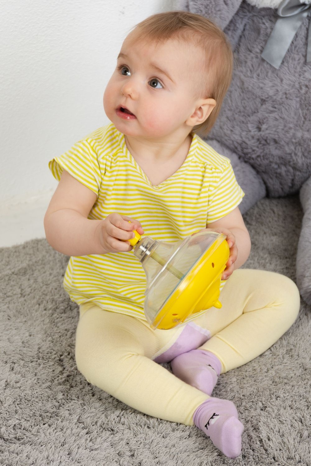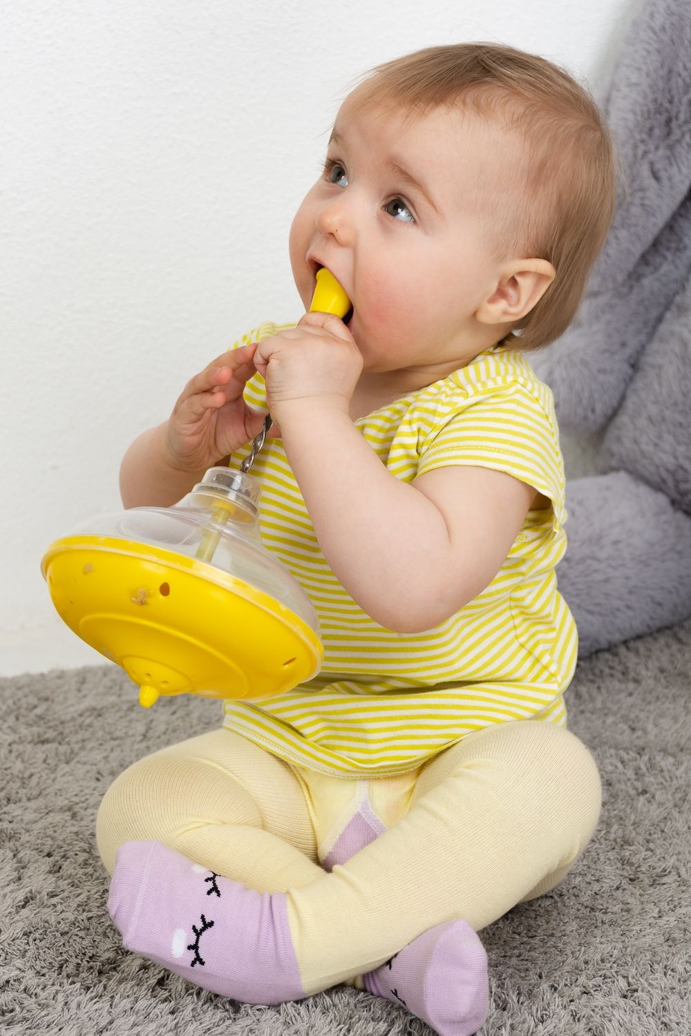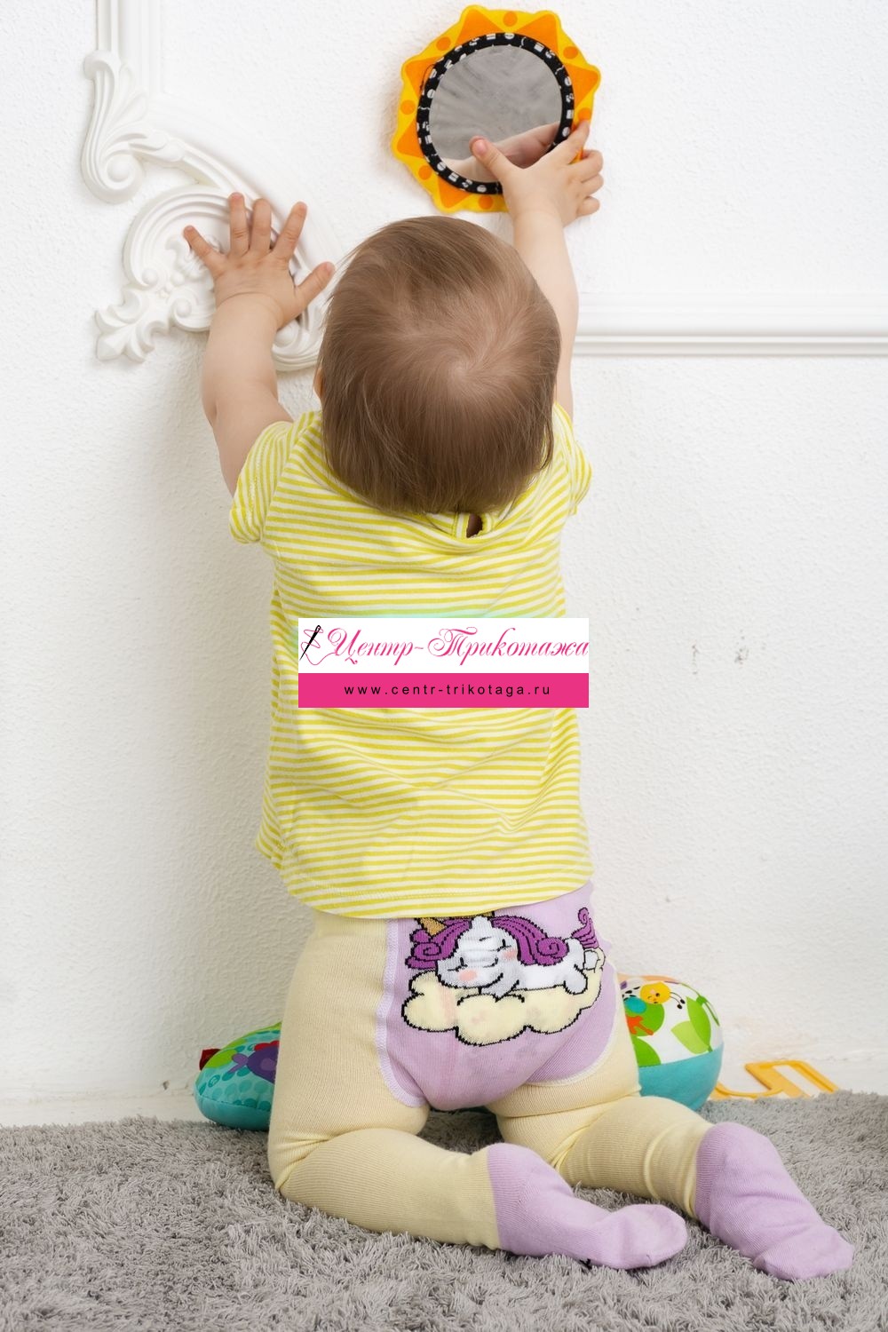 Очаровательные колготки для малышей. Снизу - имитация носочка с рисунком в виде глазок, сзади вывязан спящий единорог.