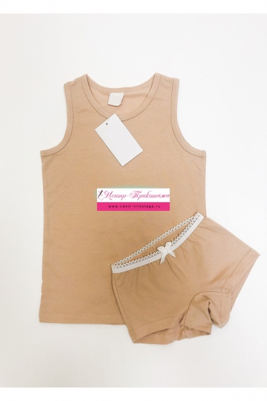 Бельевой комплект на девочку - майка и трусы-шортики. Майка полуприлегающего силуэта на бретелях. Трусики с эластичным поясом, обеспечивают комфортную посадку. Хлопковая ткань приятная к телу.