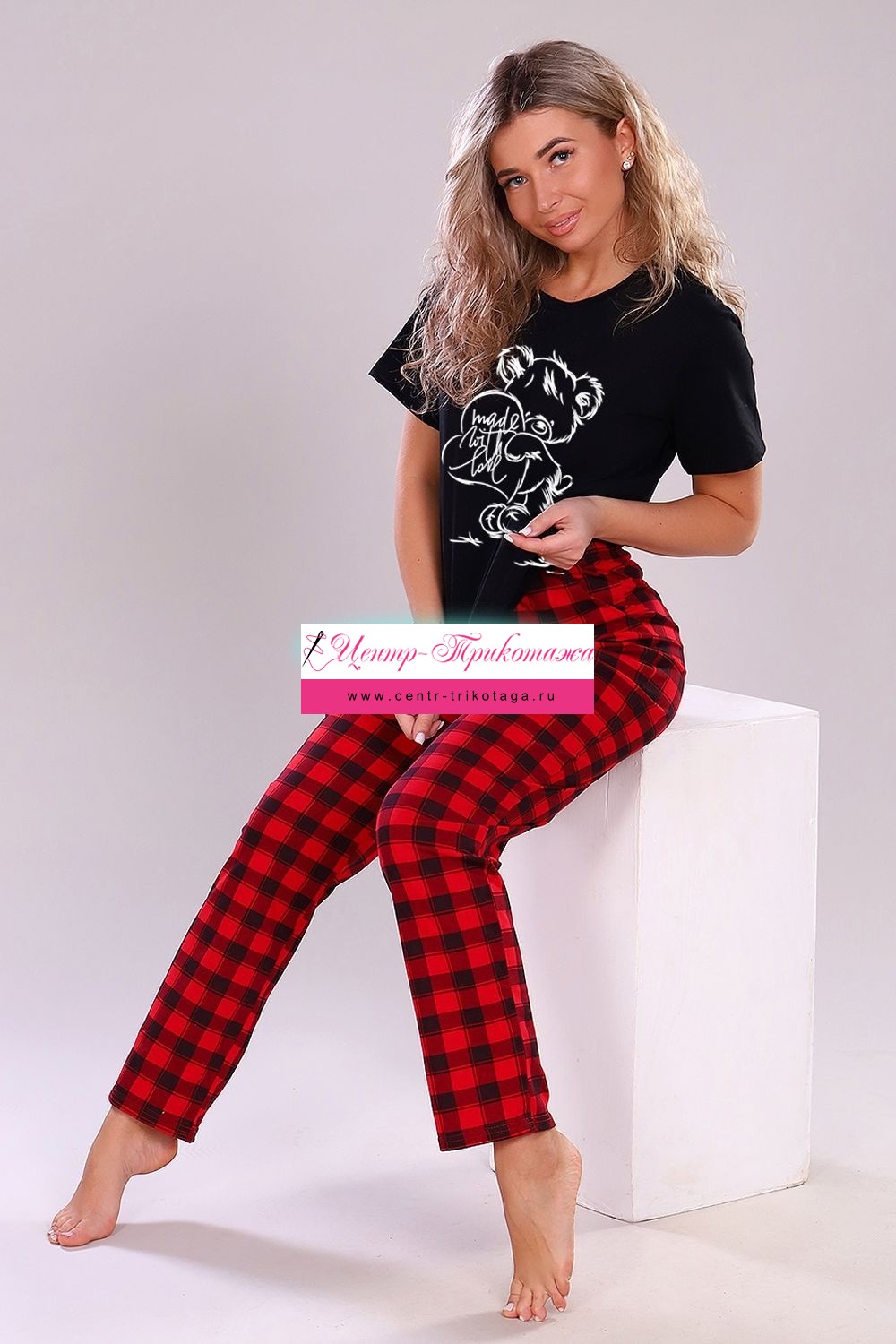 Костюм женский с брюками. Данная модель выполнена из трикотажного полотна кулирка (хлопок 100%). Футболка в стиле оверсайз с коротким рукавом, на полочке присутствует принт. Брюки свободного покроя с боковыми карманами и вшивным поясом с тройной отстрочкой. Отличная модель для домашнего отдыха.