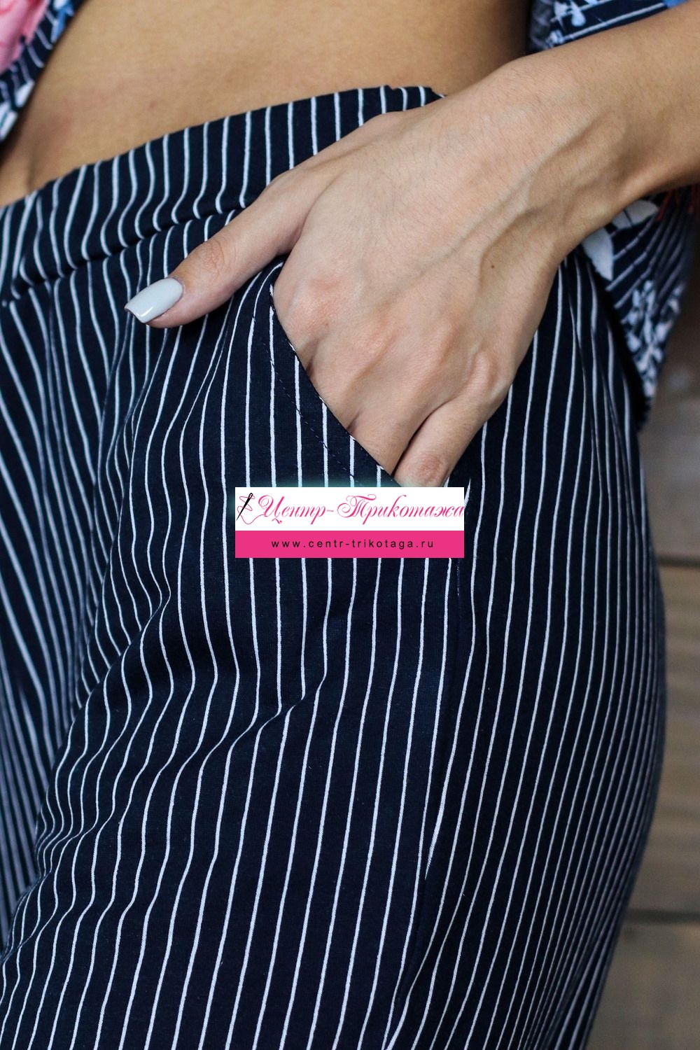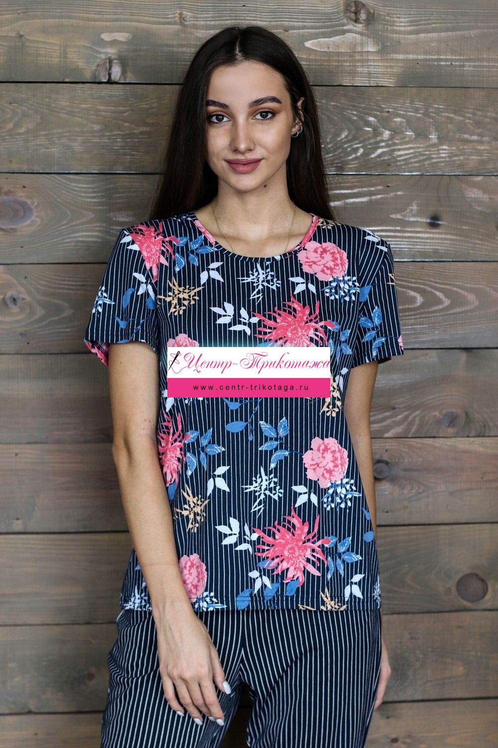Костюм женский с брюками. Футболка свободного силуэта, с втачным коротким рукавом. Горловина округлой формы. Низ изделия подогнут. Брюки свободного силуэта, с притачным поясом и карманами. Низ изделия подогнут.