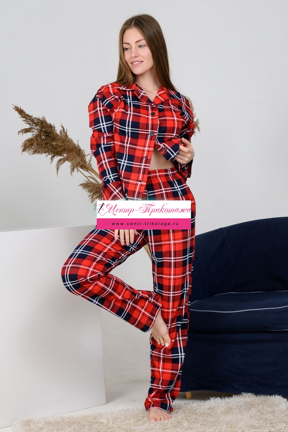 Костюм домашний. Кофточка с отложным воротником с цельнокроенными подбортами, на пуговицах, с манжетами. Свободный крой, спущенная линия плеча. Длина рукава в измерениях указана от точки основания шеи. Карманы в боковых швах брюк. Пояс на плотной резинке 3 см. 100% содержание натурального хлопка в полотне делает изделие невероятно комфортным и дышащим.