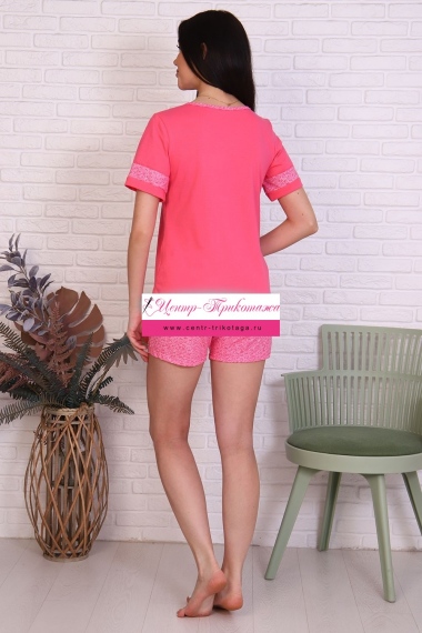 Молодежный яркий костюм из кулирки футболка + шорты. Футболка из однотонной ткани с печатью, рукава короткие, горловина V-образная, шорты из набивной ткани, с карманами