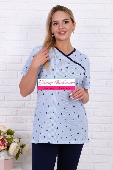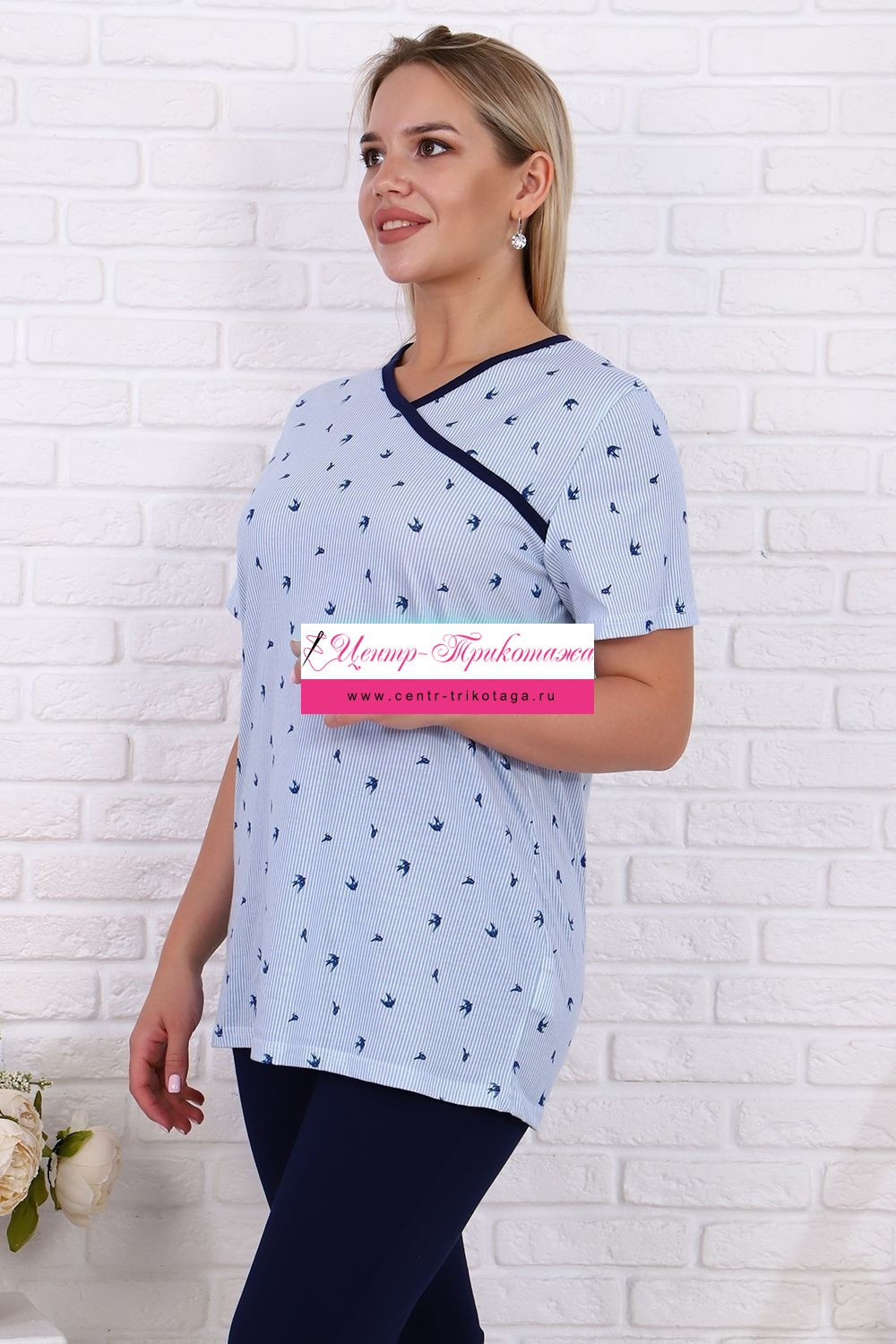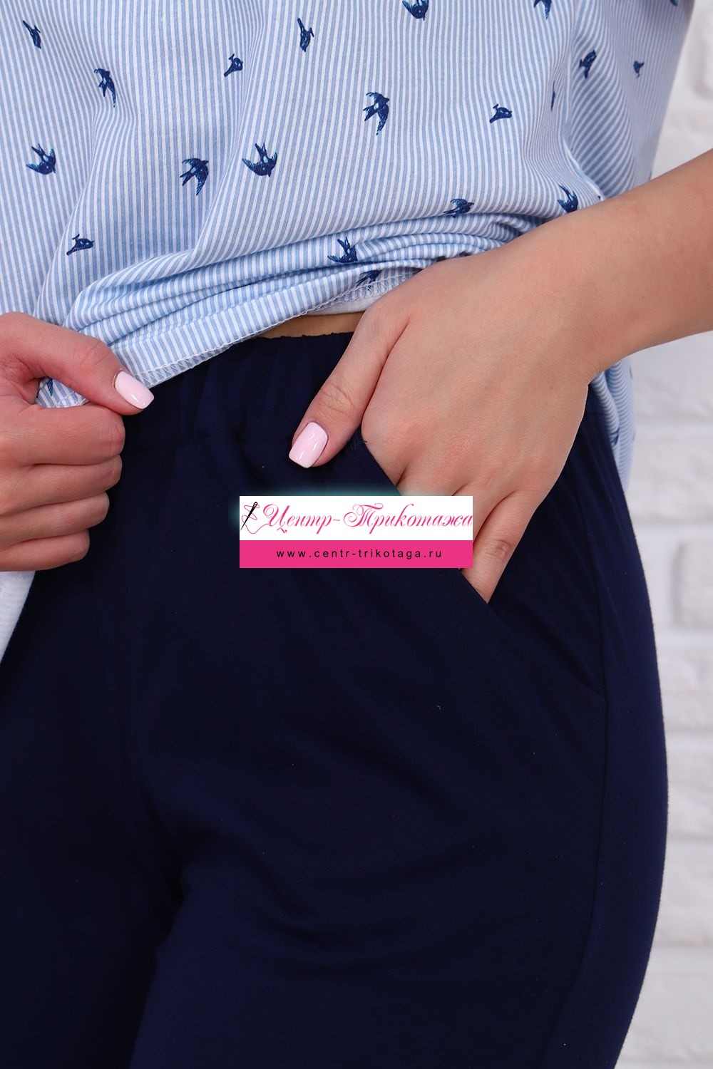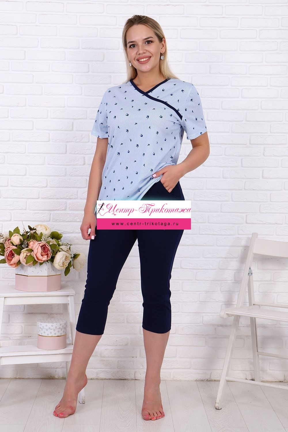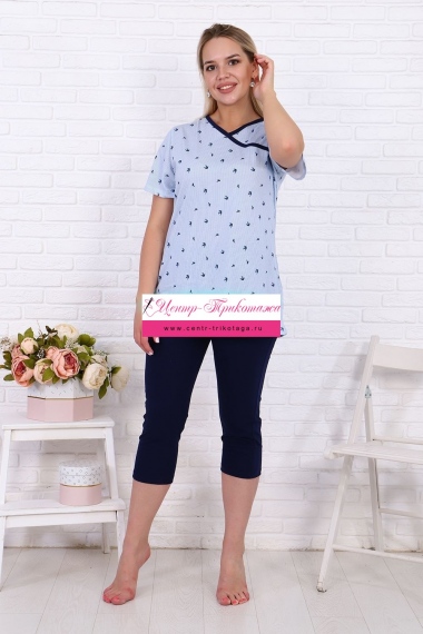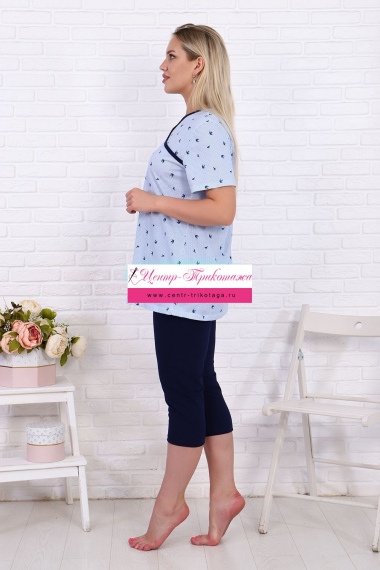 Женский костюм из кулирки футболка + бриджи. Футболка из набивной ткани с цветами, короткие рукава с манжетами, бриджи из однотонной ткани с карманами