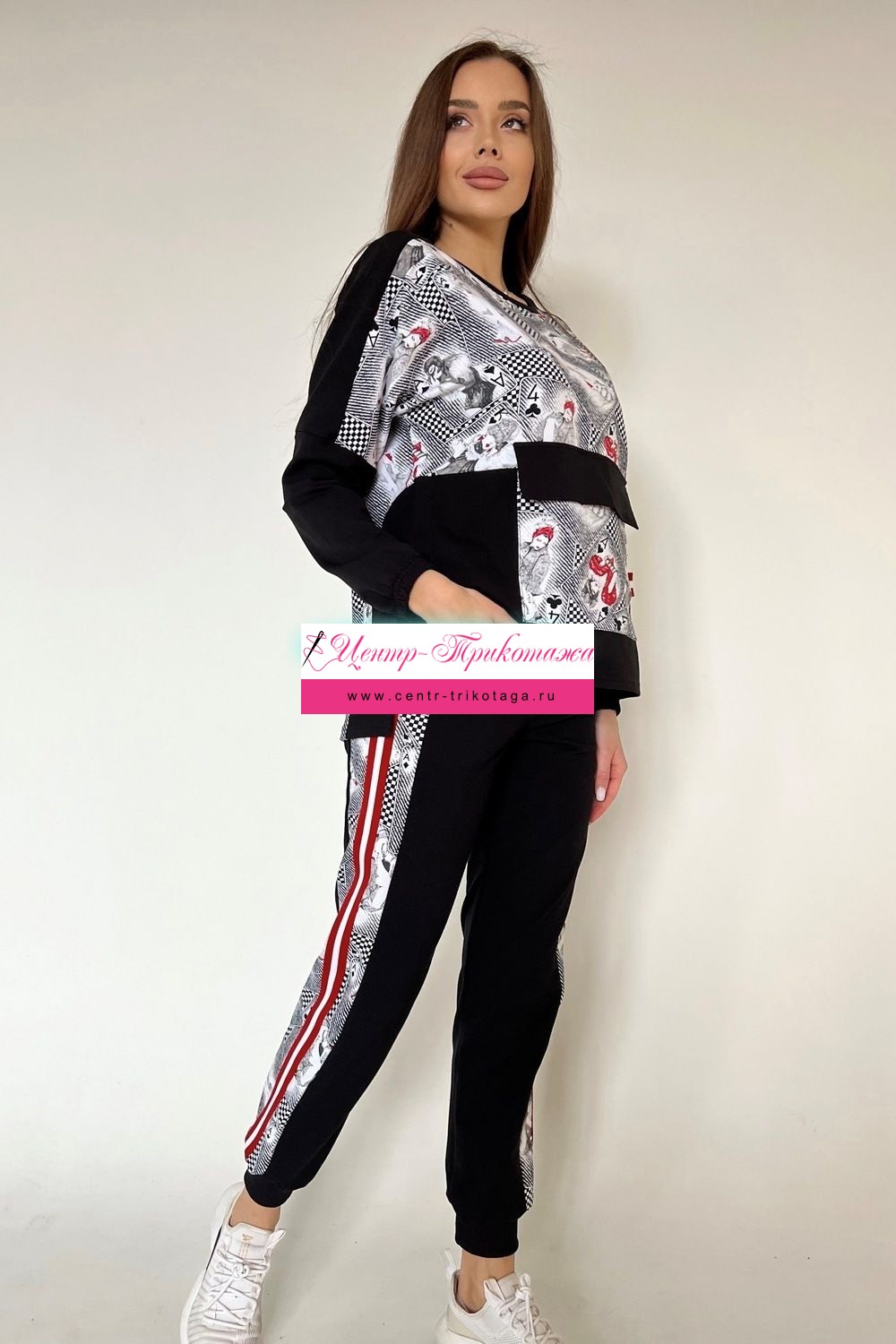 Костюм молодежный. Толстовка с карманом, брюки внизу на манжетах.