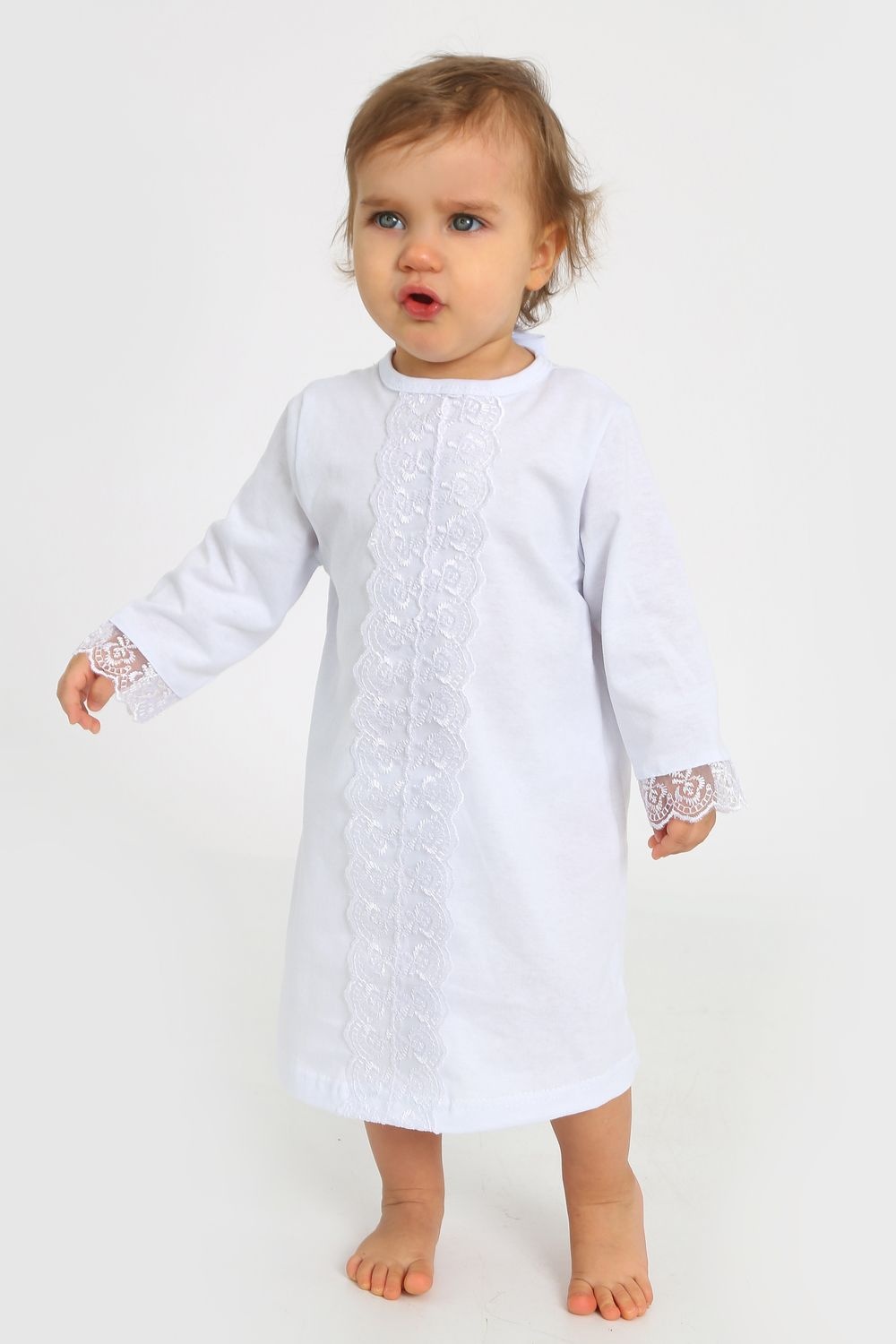 Белоснежное платье, украшено белым красивым кружевом и серебряным крестиком. Отличный вариант для первого торжества малыша - таинства крещения. Подойдет как для мальчика, так и для девочки. Выполнен из мягкой и приятной на ощупь трикотажной ткани, которая подарит максимальный комфорт в ваш светлый праздник. Длина платья от плеча до низа Рост 62-43см, 68-45см, 74-47см, 80-50см, 86-53см,92-56 см.