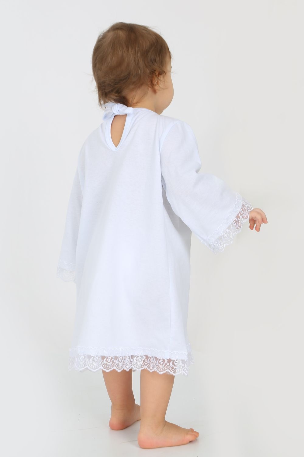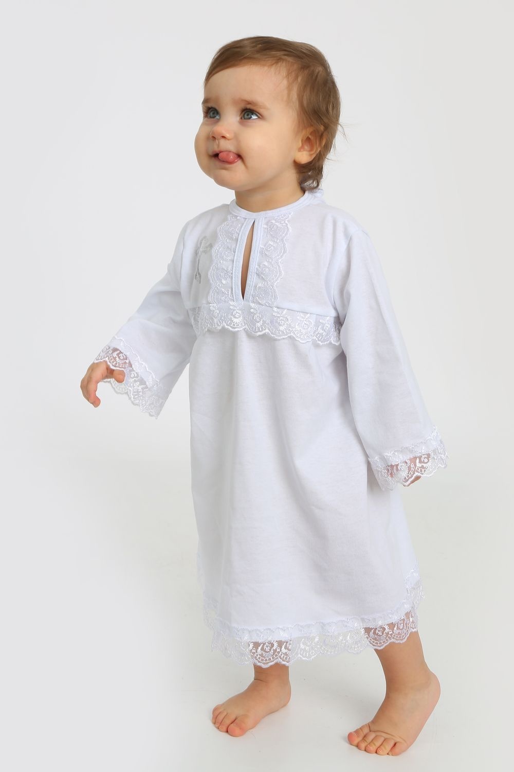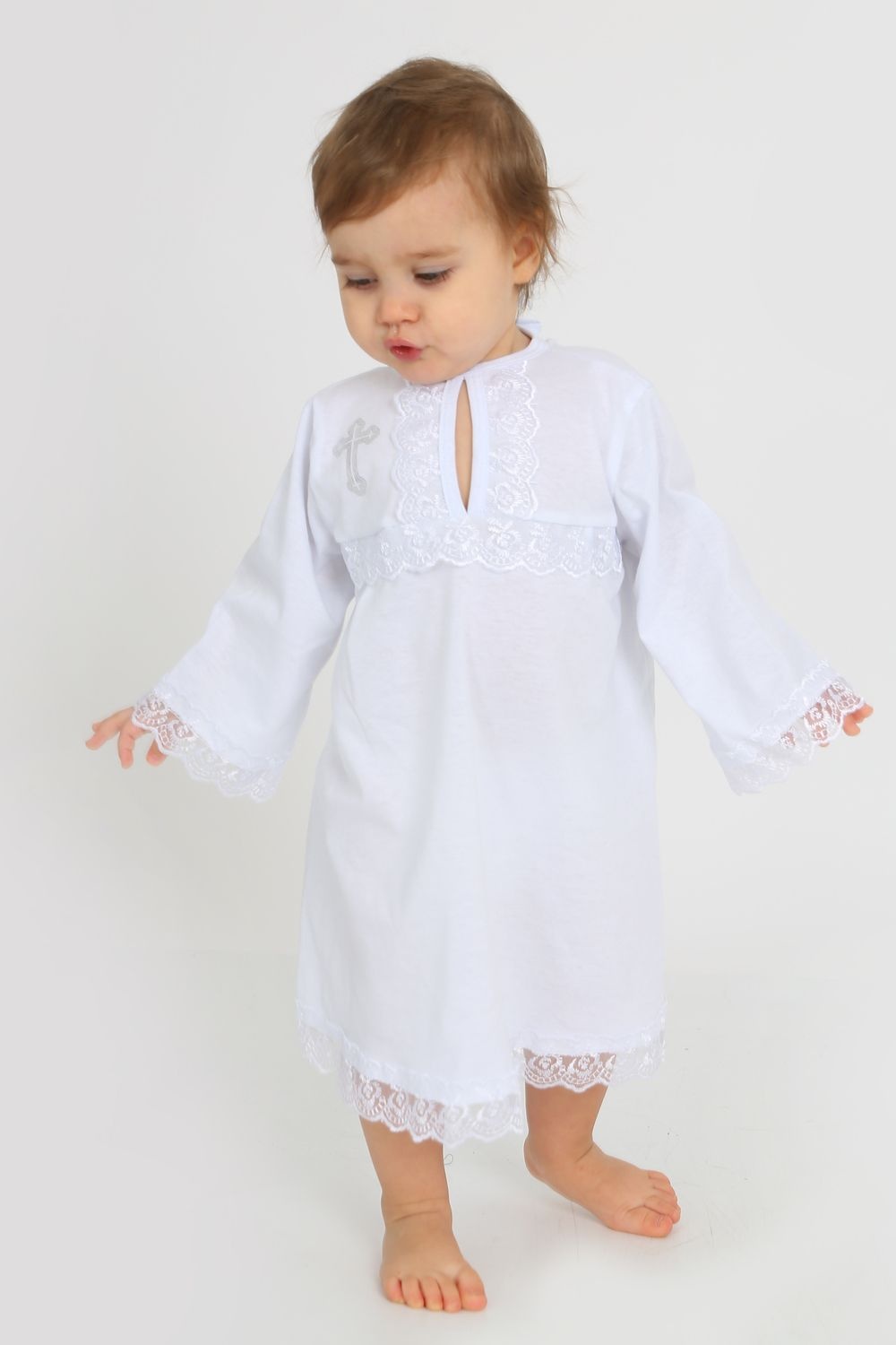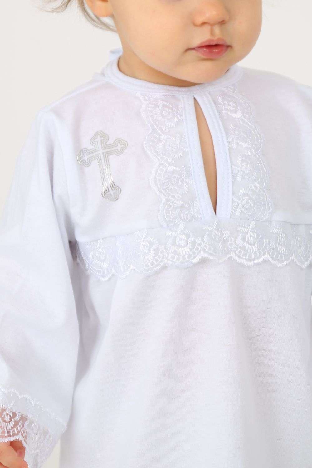 Набор предназначен для важного в жизни события - Крещение малыша. Крестильная рубашка это первое, во что одевают младенца после проведения обряда. Конструкция платья не стесняет движений, является просторной и лёгкой. Комплект для крещения выполнен в светлой цветовой гамме, имеет соответствующий тематический декор (православный крест). Необычайно красивый, мягкий комплект, с богатым кружевом! Воздушное крестильное платьице выглядит особенно торжественно, благодаря интересному крою. В набор входит два предмета: пеленка с капюшоном и платье из приятного, к коже, трикотажа. Пеленка подарит максимальный комфорт и обеспечит надежную защиту от сквозняка и прохлады. Размер пеленки 90Х90.