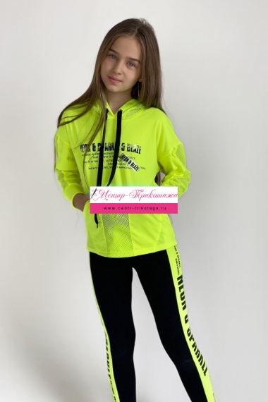 Лосины облегающие, длинные, сверху на резинке. Вдоль боковых швов расположен лампас из отделочного полотна.