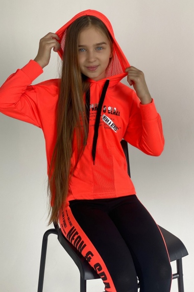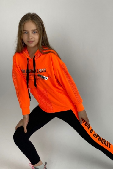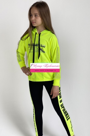 Лосины облегающие, длинные, сверху на резинке. Вдоль боковых швов расположен лампас из отделочного полотна.
