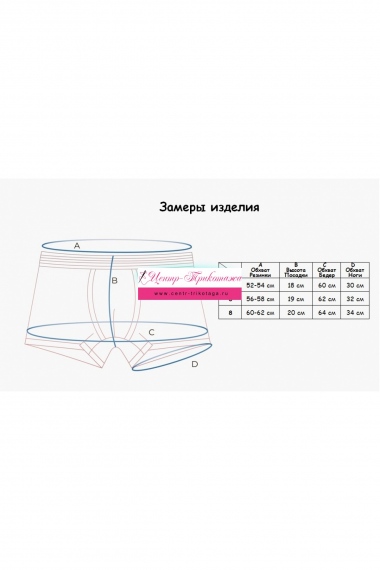 Размеры: 4 (52-54 см), 6 (56-58 см), 8 (60-62 см) - в скобках указан обхват резинки.