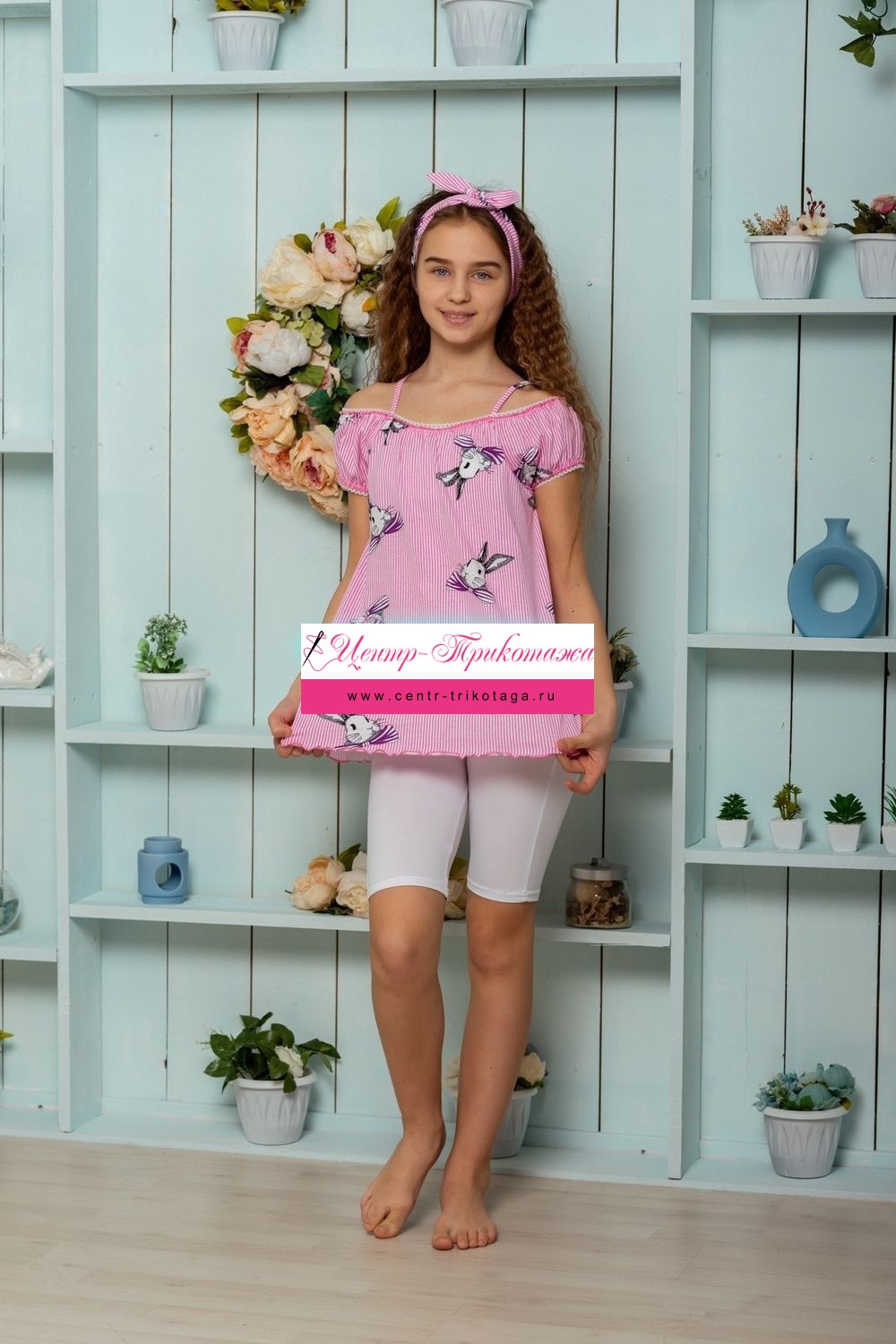 Майка детская летняя для девочек, свободного покроя на тонких бретелях, с накладным кармашком на полочке. По горловине и рукавам настрочена декоративная ажурная резинка. Все срезы в изделии обработаны декоративной краеобметачной строчкой.