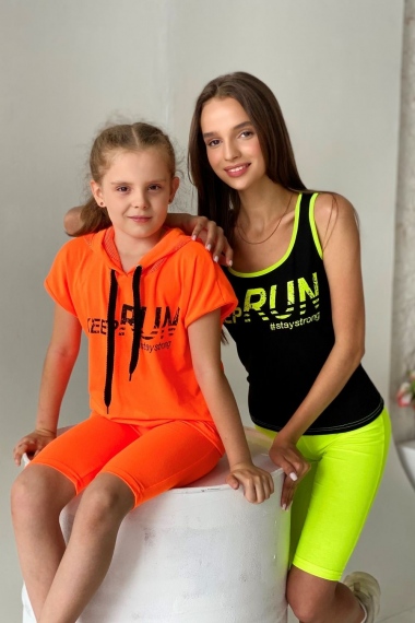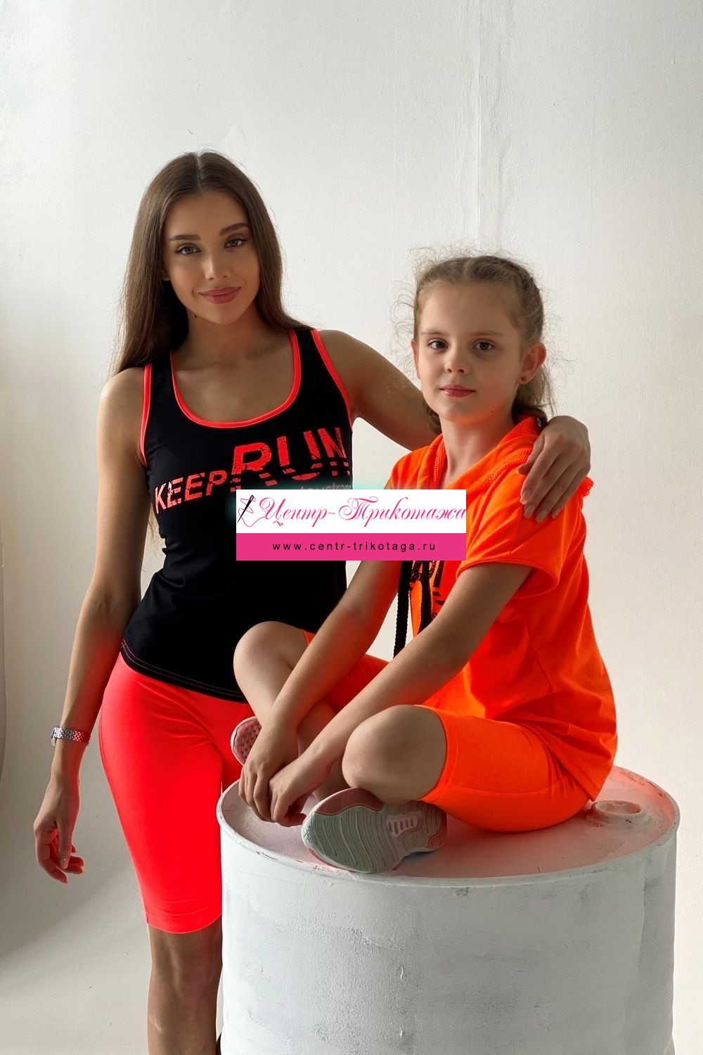 Майка-борцовка прилегающего силуэта, средней длины, с округлой горловиной. В верхней части спинки расположена вставка из сетки. Горловина и проймы майки обработаны бейкой из отделочного полотна.