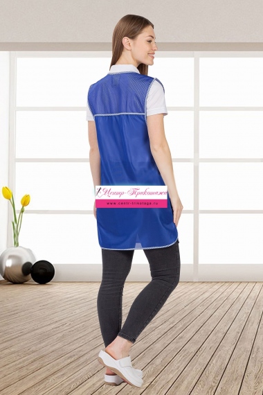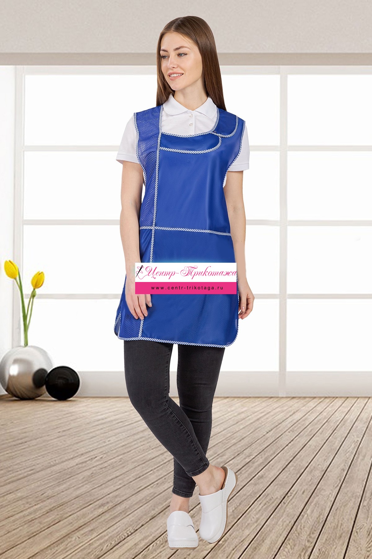Сарафан женский укороченный, расклешенного силуэта с боковой застежкой на молнию. Боковая отрезная часть полочки выполнена из дышащей ткани, что придает дополнительный комфорт при использовании сарафана в условиях повышенных температур. Сарафан имеет нижний вместительный карман из трех отделений, все срезы изделия обработаны капроновым кантом. Спинка прямая. Объем талии регулируется двумя полу-поясами. Сарафан предназначен для защиты от общих загрязнений.