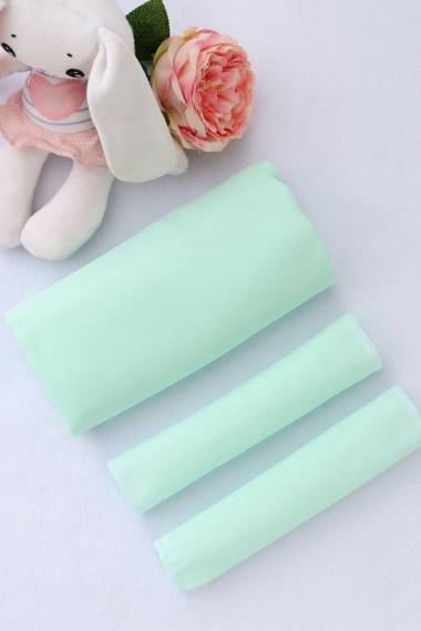 Комплект из муслина пеленка 110х110 и 2 салфетки 23х23 арт.КТ-М-мята - мята №Н-11011022323-