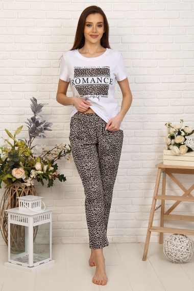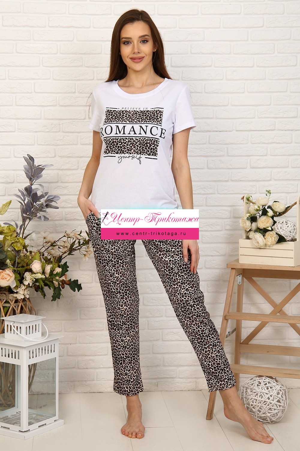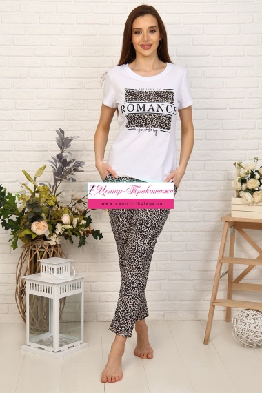 Приятная к телу женская пижама из 100% хлопка. Лучший вариант для домашнего комфорта - натуральные ткани, яркий дизайн и в то же время универсальный стиль позволяет использовать этот костюм как домашний так, и прогулок в теплую приятную погоду. В комплект входят два изделия, сшитые из кулирки.