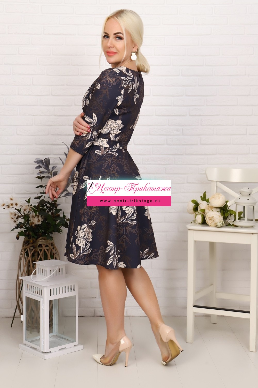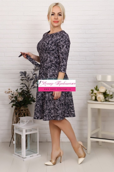 Платье-миди с приталенным верхом и струящейся юбкой, с поясом. На спинке застежка-молния. Рукав 3/4