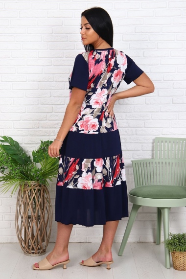 Повседневное платье с оборками, коротенький рукав, округлый вырез - отделан кантиком. Длина ниже колен.