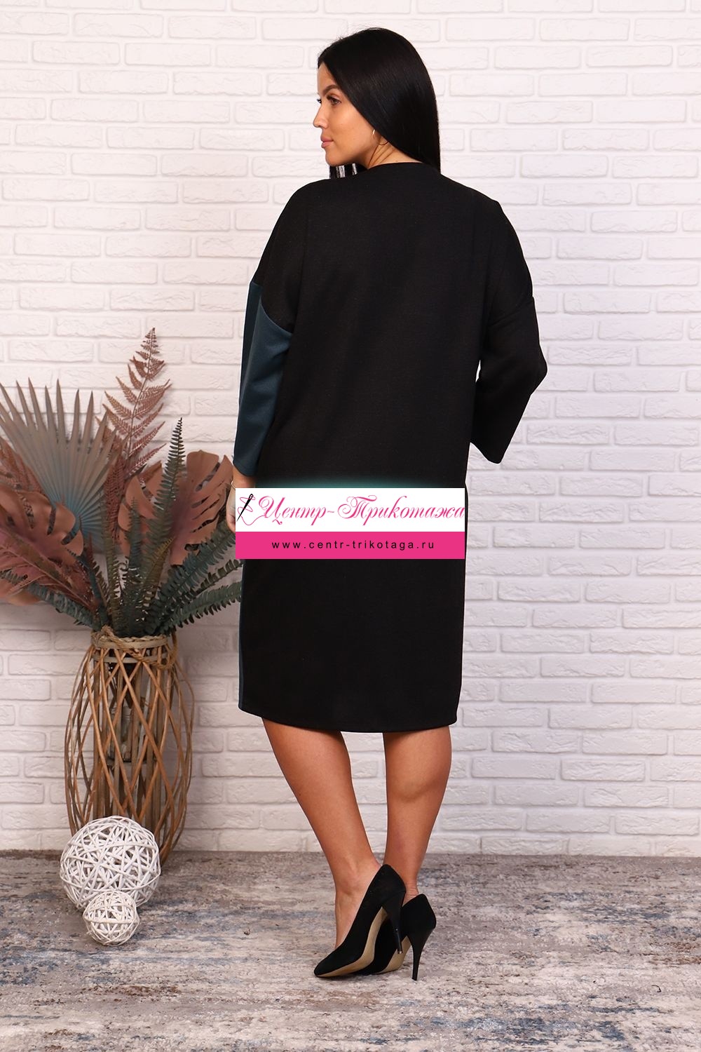 Платье прямое свободного кроя. Округлая горловина. Плечо спущенное, рукав 3/4. Передняя полочка разделена декоративной молнией, накладной карман. Длина средней длины.