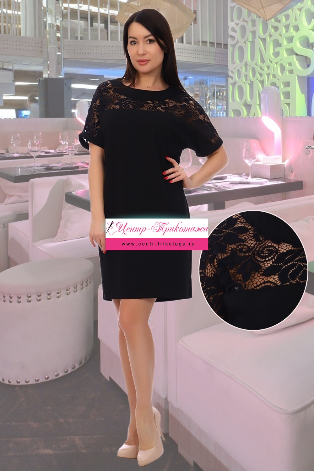 Женское платье прямого силуэта, с кокеткой из кружева, рукав спущенный.