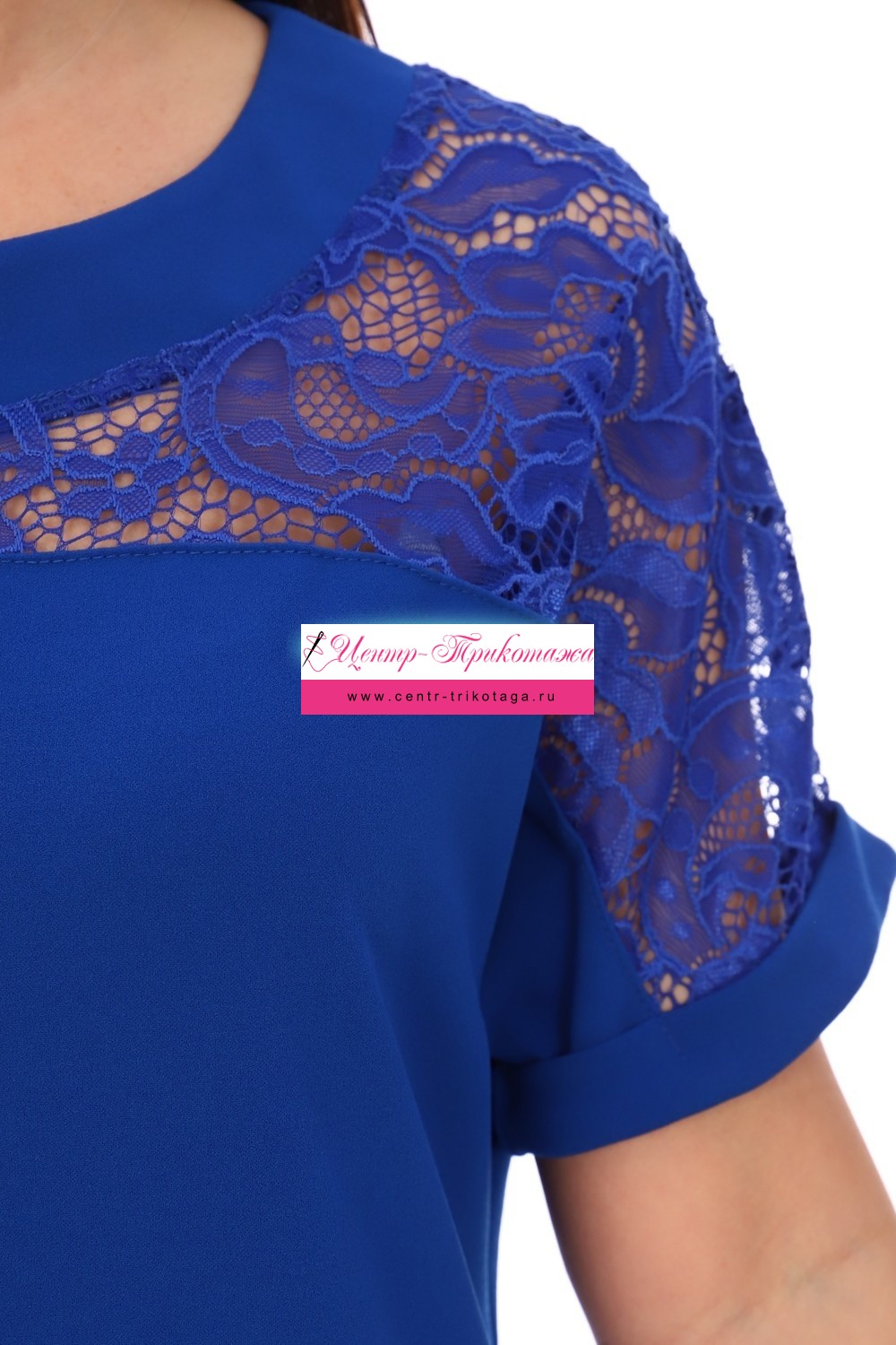 Женское платье прямого силуэта, с кокеткой из кружева, рукав спущенный.
