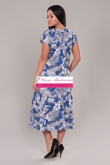 Платье женское удлиненное со спущенным рукавом, на полочке подрез, планка на трех декоративных пуговицах, внизу расклешение. Рисунок ткани красивый, насыщенный. Модель придает легкость, изящность, подойдет на каждый день, для прогулки и дома.