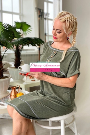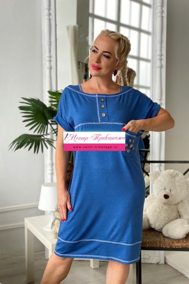 Платье женское прямого силуэта. На полочке и спинке кокетки. Рукав цельнокроенный с притачной манжетой на пуговице. На кокетке полочки планка с тремя декоративными пуговицами. На полочке нагрудный карман с тремя люверсами и четырьмя пуговицами. Шов притачивания нижней части платья, швы притачивания кокеток, планки и горловина отделаны контрастной декоративной строчкой. На нижней части спинки шлица на двух пуговицах.