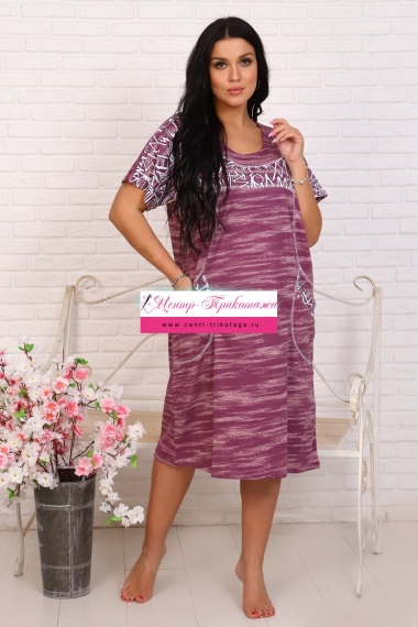 Стильное женское платье из кулирки. Свободный покрой со спущенным плечом и накладными карманами, рукава короткие, два варианта дизайна — белые либо розовые цветы, общая длина чуть ниже коленей