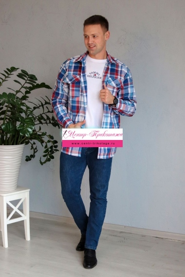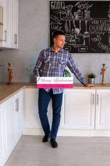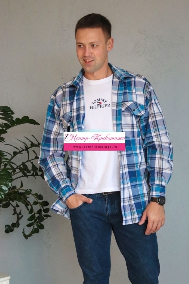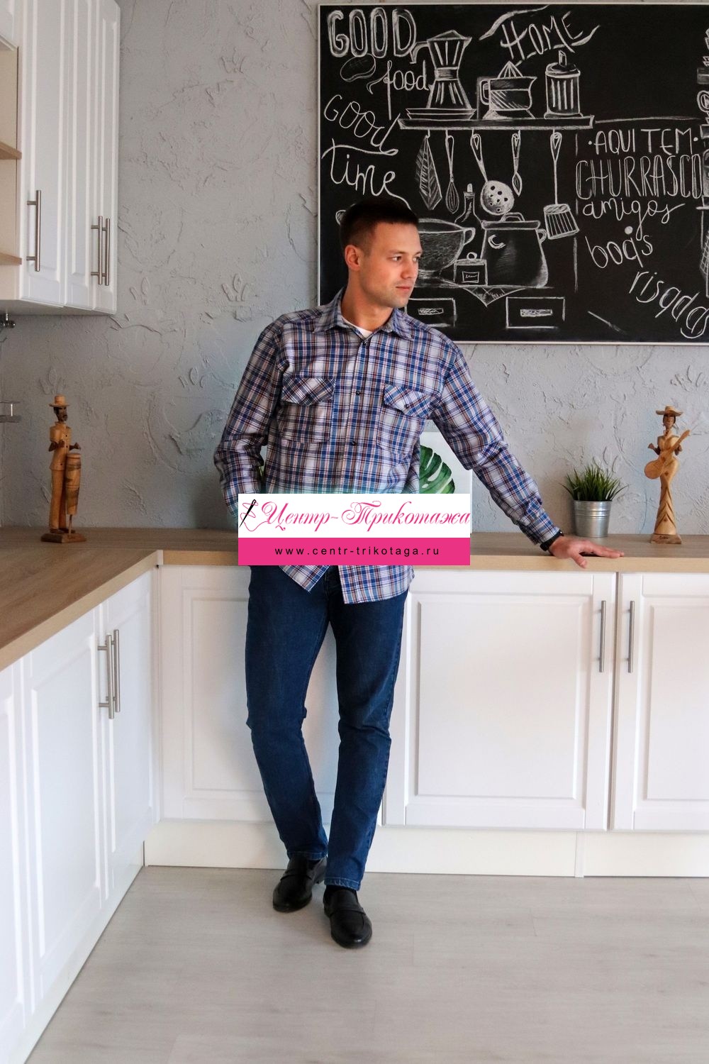 Мужская рубашка в клетку с длинным рукавом. Ткань шотландка 100% хлопок. Модель свободного кроя, дополнена двумя накладными карманами и клапанами с пуговицей. Планка на полочке цельнокроеная, застегивается на пуговицы. Плечо приспущено, рукав до запястья на манжете. Воротник на стойке, проложен флизелином с отстрочкой. Низ изделия застрачивается швом в подгибку при помощи специального приспособления. Внимание! Данный товар по цвету не подбирается.