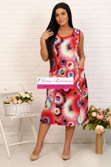 Яркий летний сарафан с карманами и двойной кокеткой. Длина ниже колена. Цвета в ассортименте