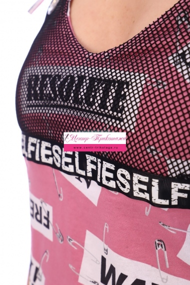 Молодежный сарафан на завязках. Фигурный вырез горловины с люверсами спереди и сзади, по верху кокетки - сетка. Посадка и длина регулируются шнурками