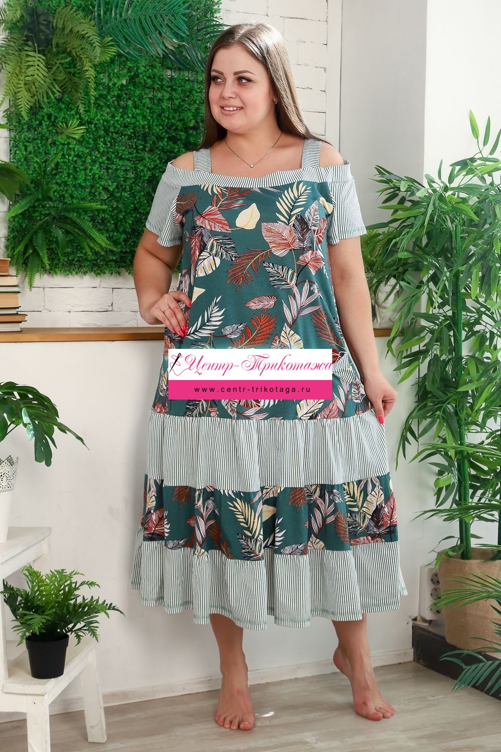 Сарафан женский, к низу расширенный. Низ платья из трех ярусов на небольшой сборке. На полочке два накладных кармана с завязками. Обтачка верха, бретели, короткие рукава, обтачки карманов и два яруса сарафана из ткани в тонкую полоску, что придает изделию особую неповторимость и актуальность. На модели 52 размер