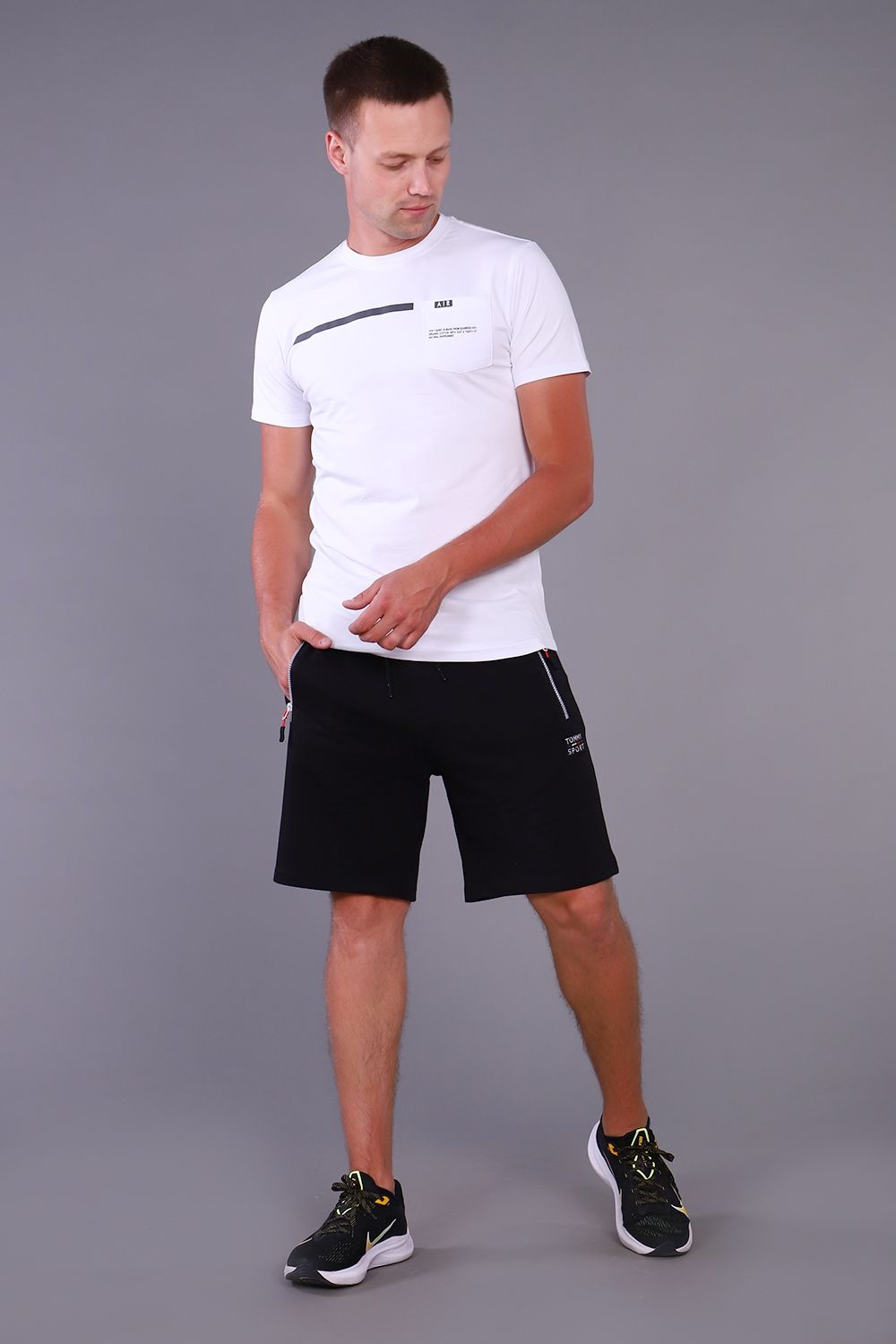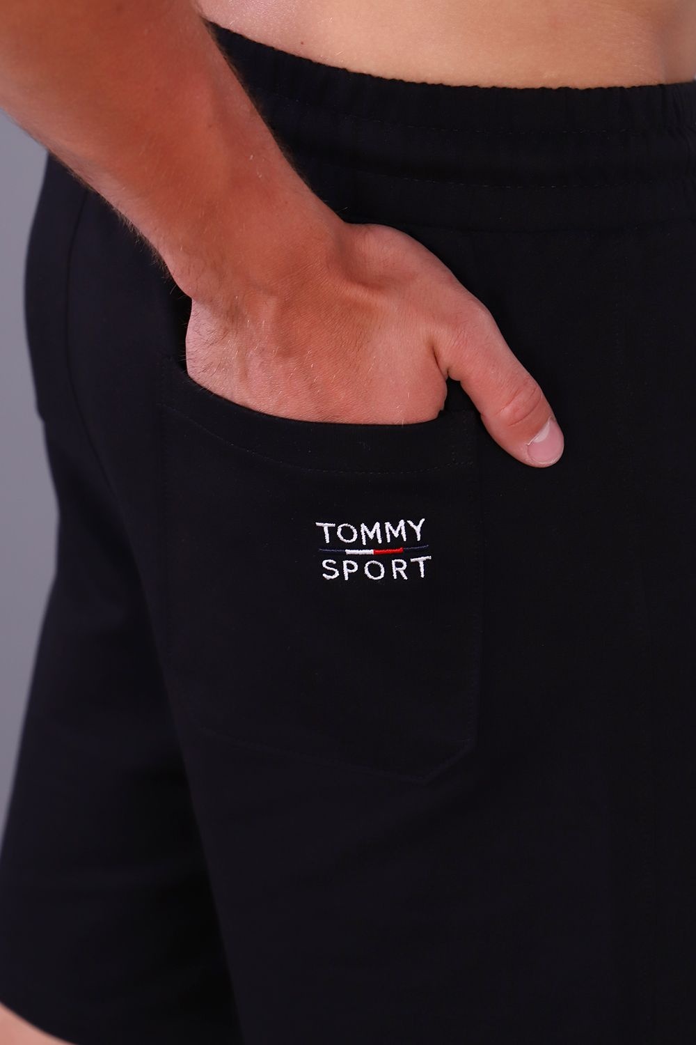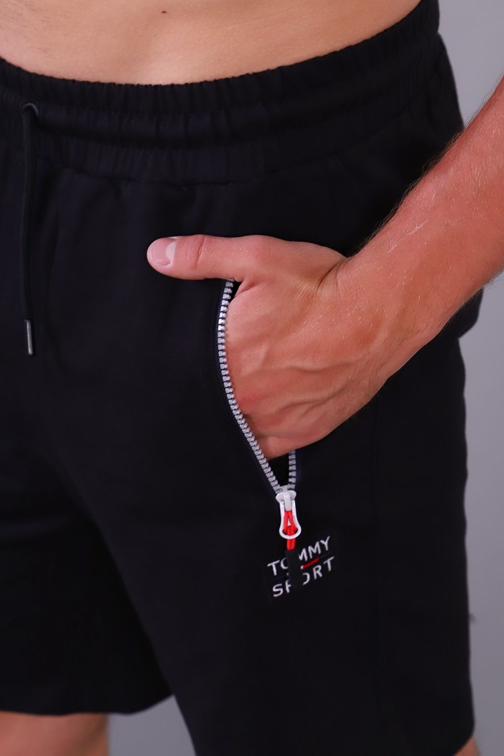 Шорты мужские с поясом на резинке со шнурком, по бокам имеются два прорезных кармана на молнии и один накладной карман сзади.Слева под карманом и сзади на накладном кармане вышивка надпись TOMMY SPORT. Шорты удобные прекрасно держат и при растягивании принимают исходную форму, не вытягиваются, не стесняют движений, не застирываются и не покрываются катышками. Универсальные для фитнеса, тренировок, занятия спортом, бега,