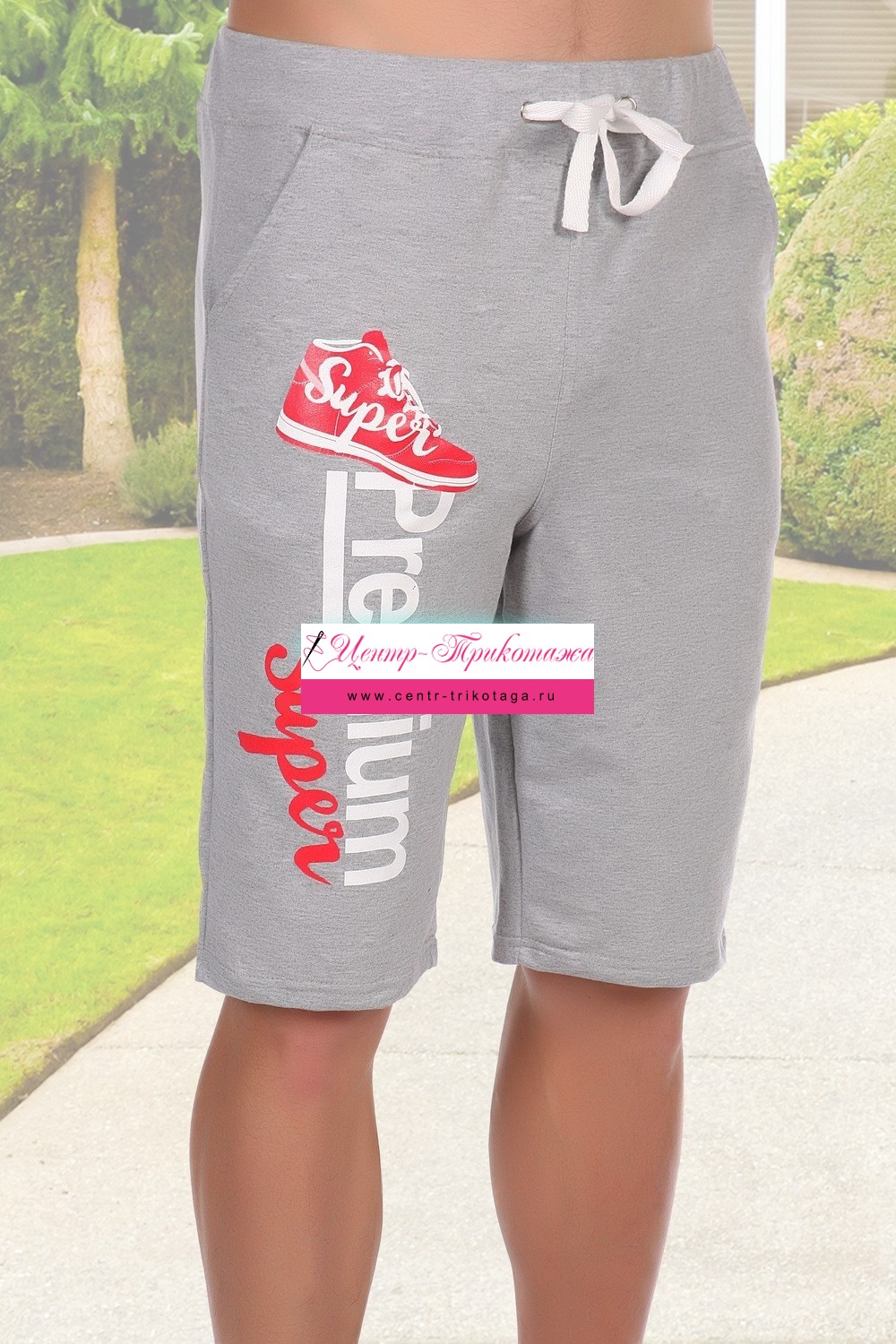 Мужские шорты из футера с лайкрой. Принт в виде кроссовка и надписи, пояс на резинке со шнурком, по бокам карманы, длина приблизительно до коленей. Могут быть парой детским шортам Кевин (продается отдельно). Две расцветки — серая и синяя. Размеры от 44 до 62. Возможна розница.
