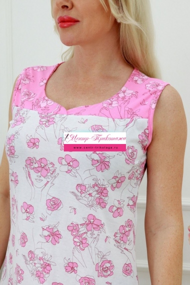 Сорочка женская А-силуэта с комбинированной кокеткой, пройма и горловина спинки отделаны узкой бейкой. Отличный вариант для комфортного сна и домашнего уюта!