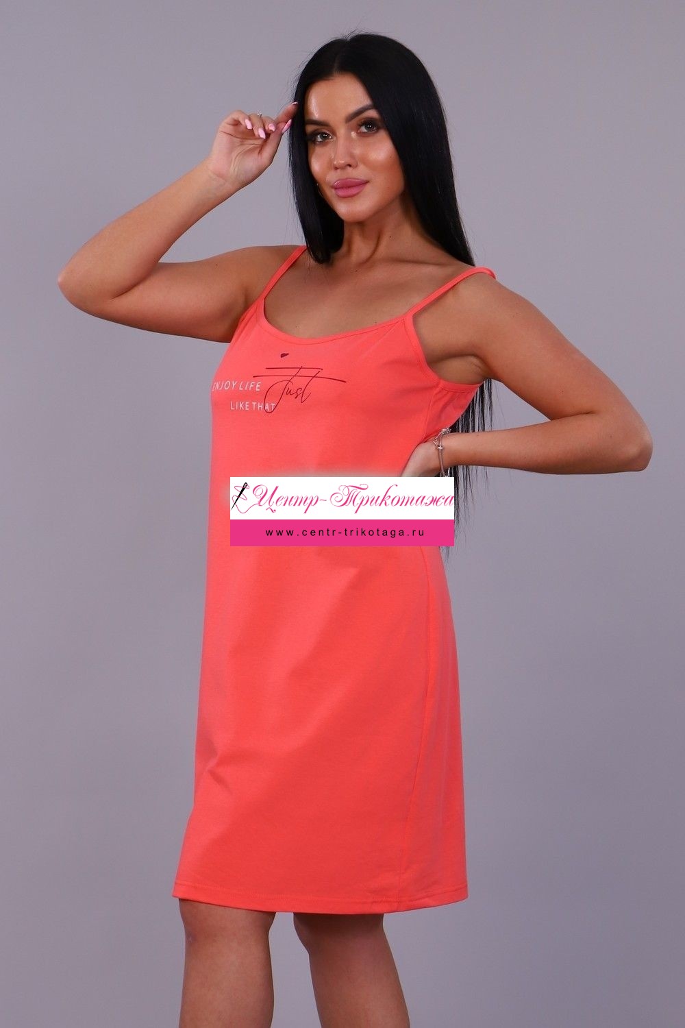 Стильная женская сорочка на тонких бретельках, 100% хлопок - отличный выбор для отдыха. Стильный принт на полочке.