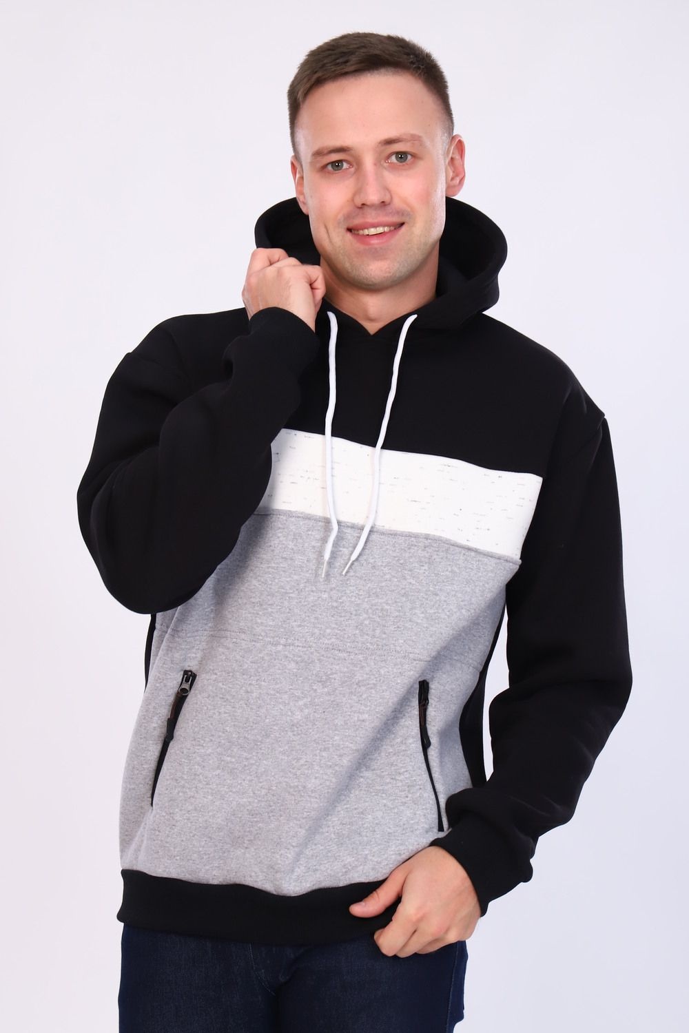 Стильная мужская толстовка с капюшоном выполнена из футера трёх нитки пенье компакт. Она имеет начес, что делает её идеальным выбором для прохладных дней. Капюшон регулируется шнурком. По бокам расположены вместительные карманы на молнии (кенгуру). Доступна в нескольких базовых расцветках с контрастными вставками по типу колор-блок. Первая стирка с изнаночной стороны при 30 градусах. При первой стирке ворс начеса полиняет. Это нормально.