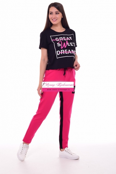 Состав: футболка - 100% хлопок; брюки - 72% хлопок, 20% полиэстер, 8% эластан.