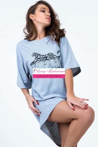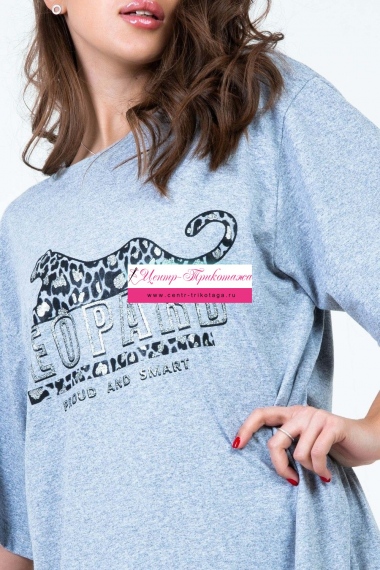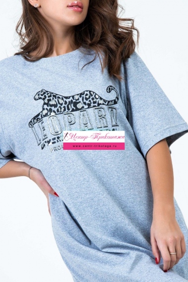 Платье-туника оверсайз с широкими рукавами. Горловина округлой формы обработана качественной рибаной с лайкрой, поэтому после стирки не растягивается. Оригинальный принт на полочке в виде стилизованного леопарда привлекателен именно в своей простоте. Фасон подходит для всех типов фигуры. Принт с серебряным глиттером. Длина рукава указана от основания шеи.