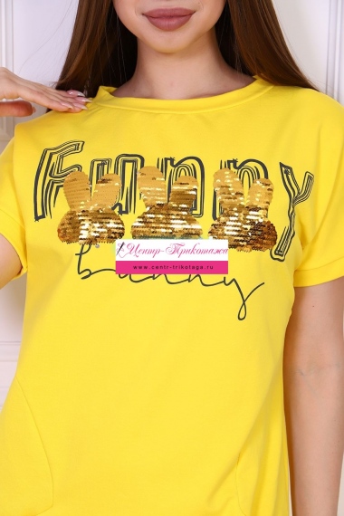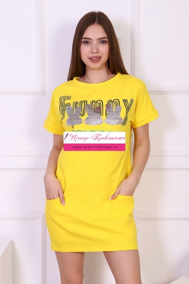 Туника молодёжная с принтом и пайетками из футера с лайкрой 2-х нитка. Модель свободного кроя в стиле OVERSIZE, горловина в виде лодочки , спущенная пройма, обработаны узкой планкой, на передней полочке фигурные рельефы с декоративными заниженными карманами. Стильная, удобная туника для девушек любой фигуры, позволяет чувствовать себя максимально комфортно и уверенно.