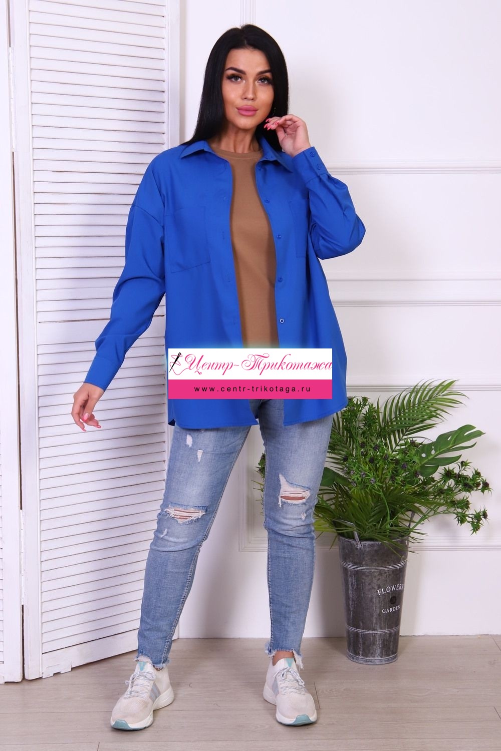 Туника рубашечного кроя, оверсайз, с длинным рукавом. Фигурный низ, застегивается на пуговицы, два нагрудных кармана.