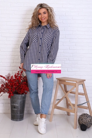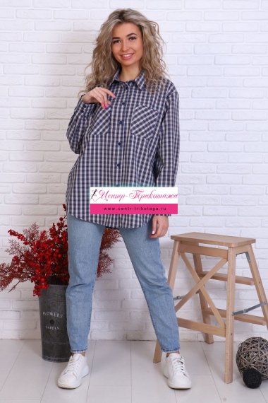 Рубашка оверсайз в клетку, центральная застежка на пуговицы, силуэт прямой, 2 кармана.
