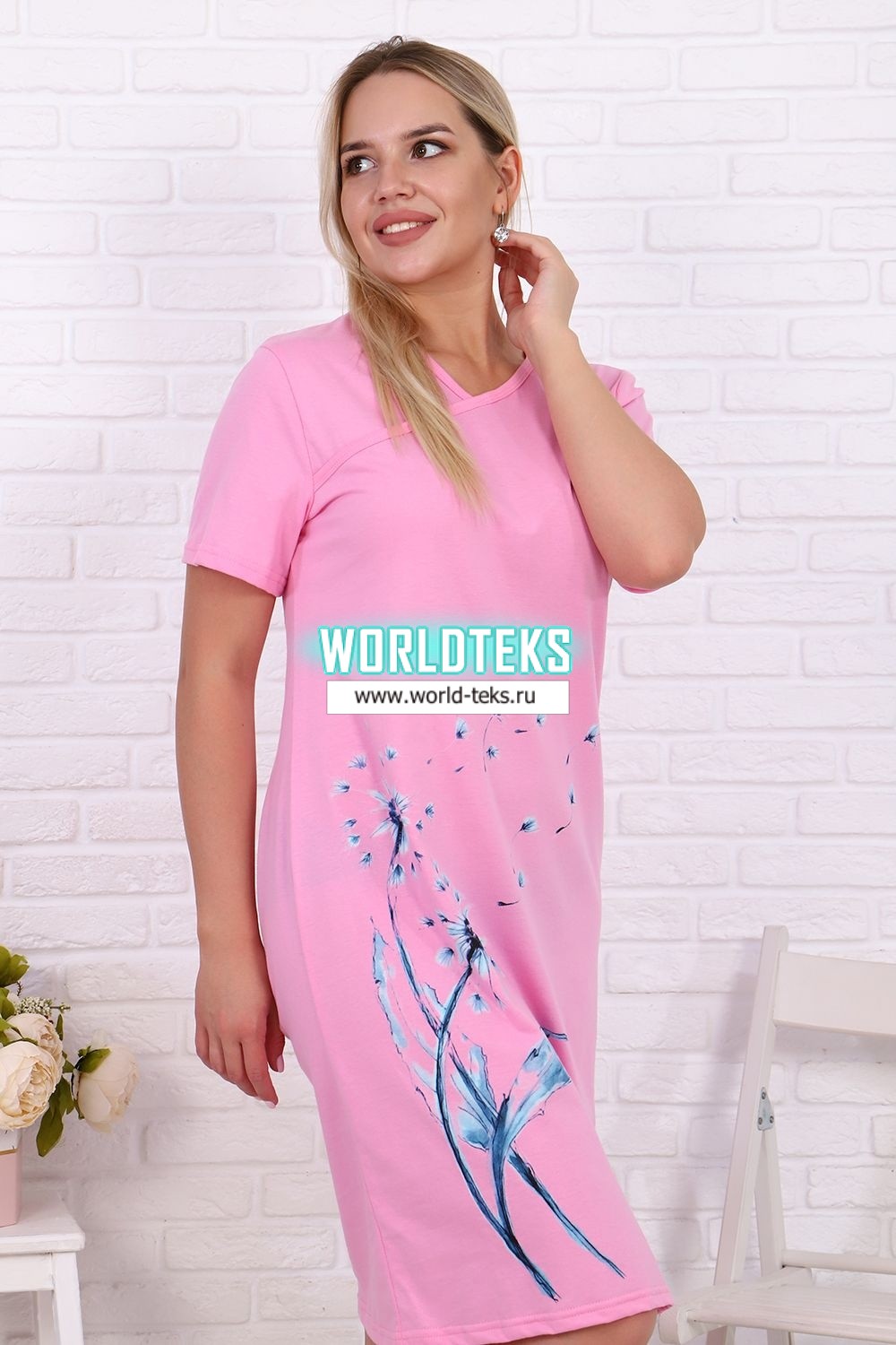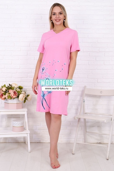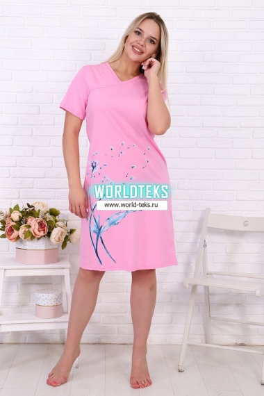 Туника женская из хлопкового трикотажного полотна со стильным принтом на полочке в виде одуванчиков. Рукава короткие на подгибке, горловина обработана кантом, отлично подойдет как для повседневной носки, так и для отдыха дома
