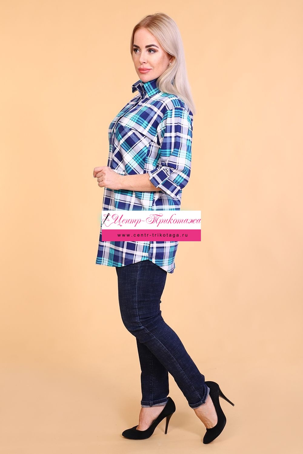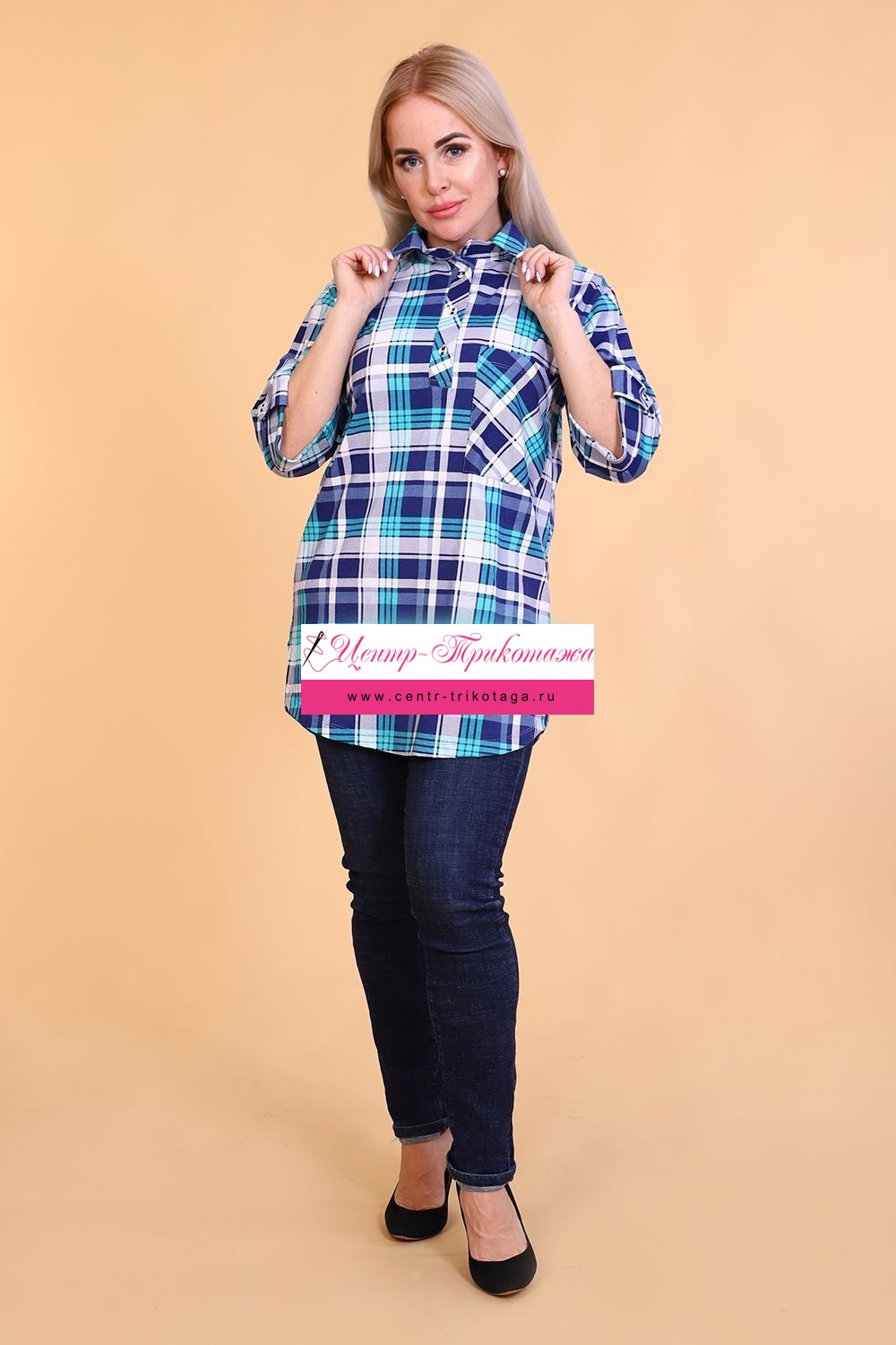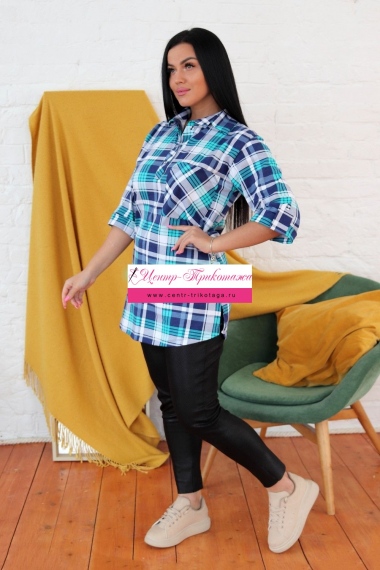 Туника клетка выполнена из ткани кулирки хлопок 100%. На полочке планка с пуговицами, карман, воротник рубашечный со стойкой, рукава на манжете с патой. Внизу легкое закругление, по бокам разрезы, на спинке кокетка. Туника подойдет для отдыха, дома и прогулок.