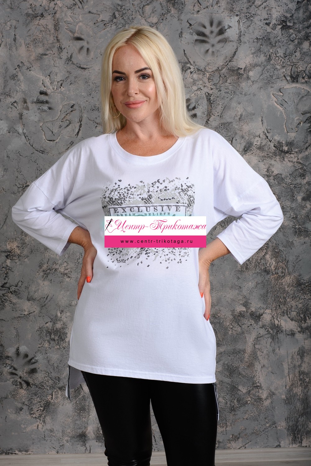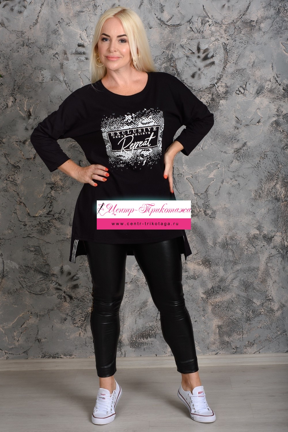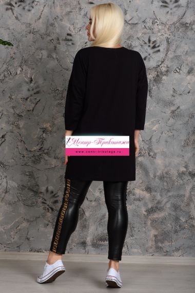 Туника женская. На полочке принт. По низу изделия отделка – тесьма.